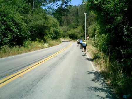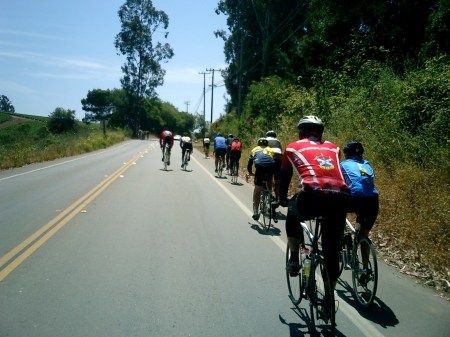 Cyclists gather in Monterey for a ride to Surf City Coffee in Aptos.