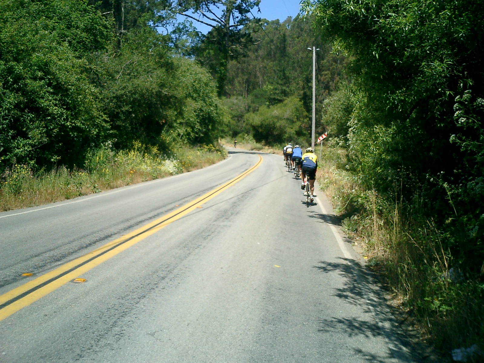 Cyclists gather in Monterey for a ride to Surf City Coffee in Aptos.