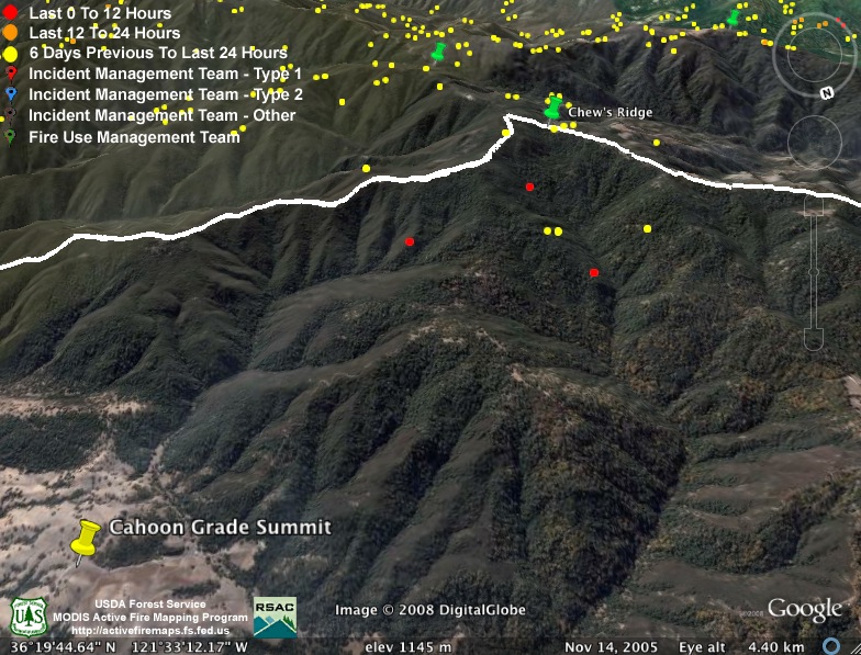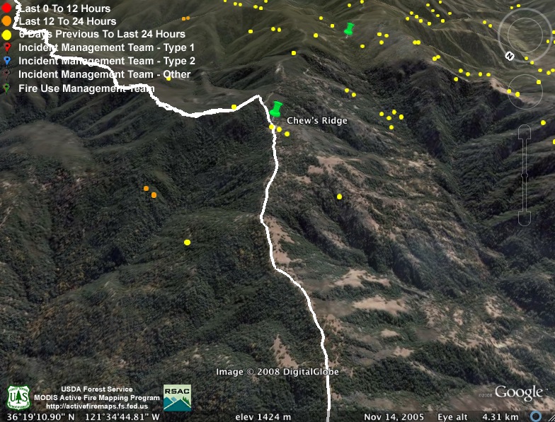 The only new heat detections on the back side of Chew’s Ridge are in the Rocky Creek drainage: