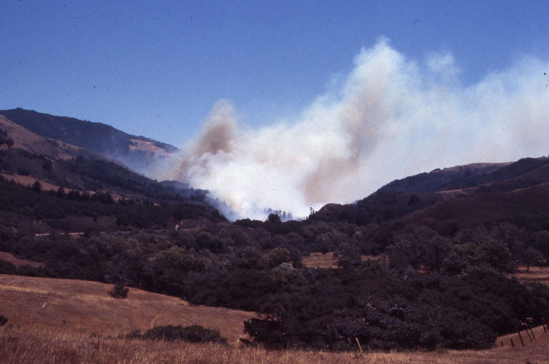 Senator Farr still wanted to get to Big Creek and after a few hours he was able to convince the CHP to escort us through the fire. As we drove through, fire was burning along the east side of the Highway from Molera past Captain Cooper. At Post’s, I looked back and saw huge flames boiling up from the top of the Mt. Manuel ridge overlooking the gorge. It was only a few hours after the fire started, but it had already moved off into the wilderness.