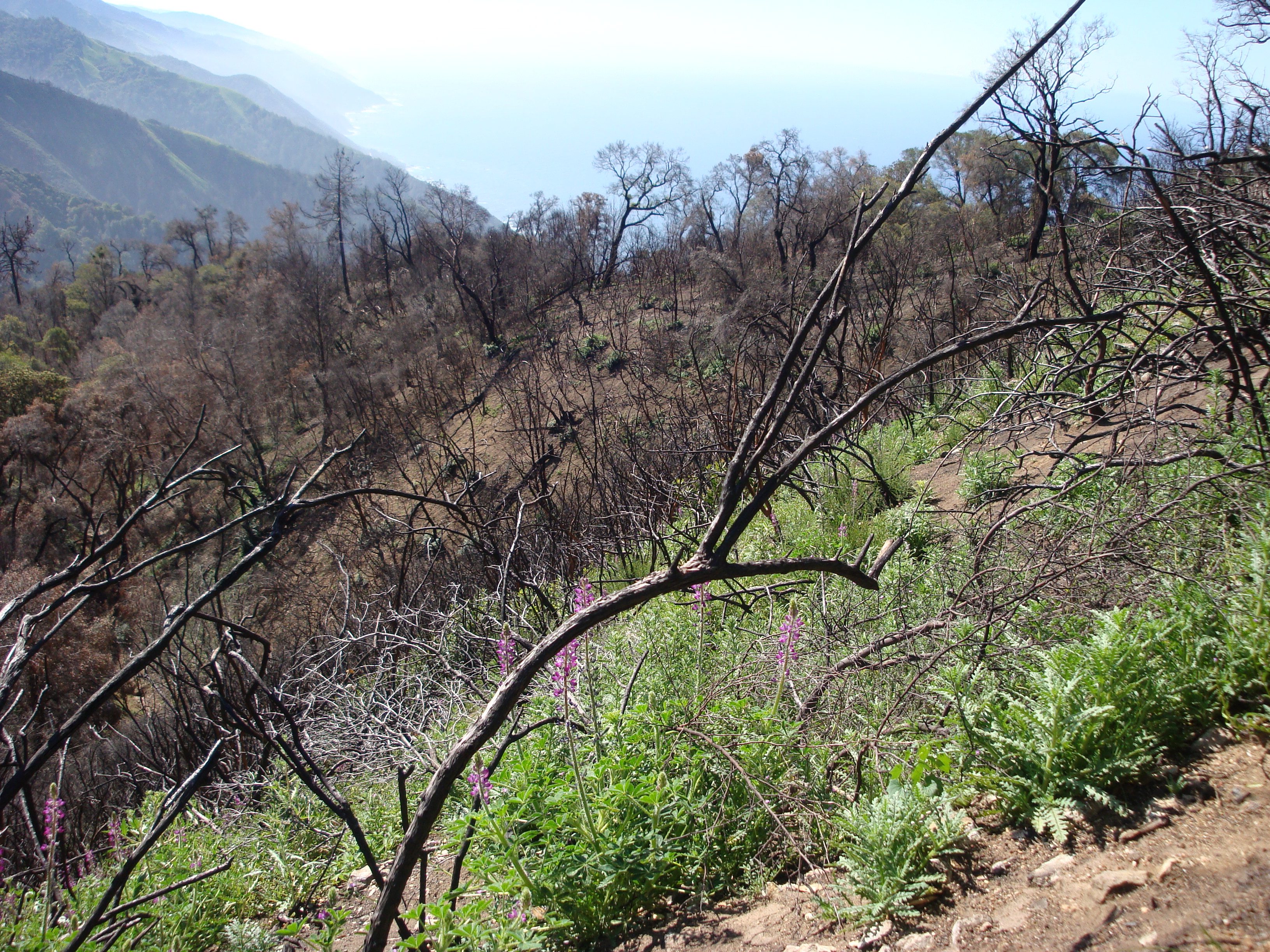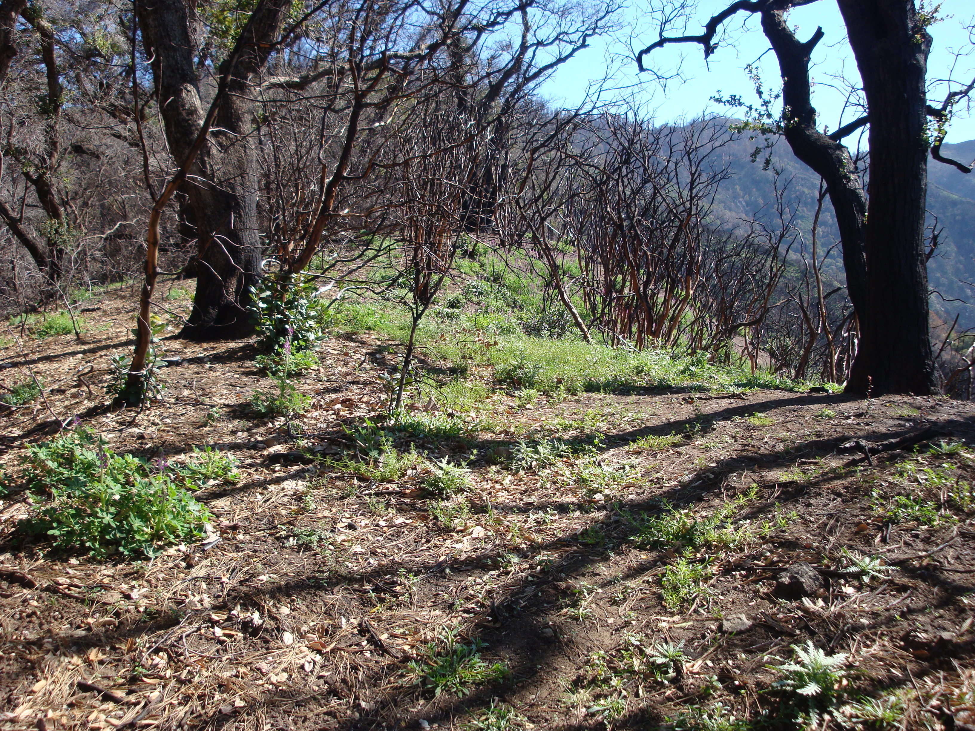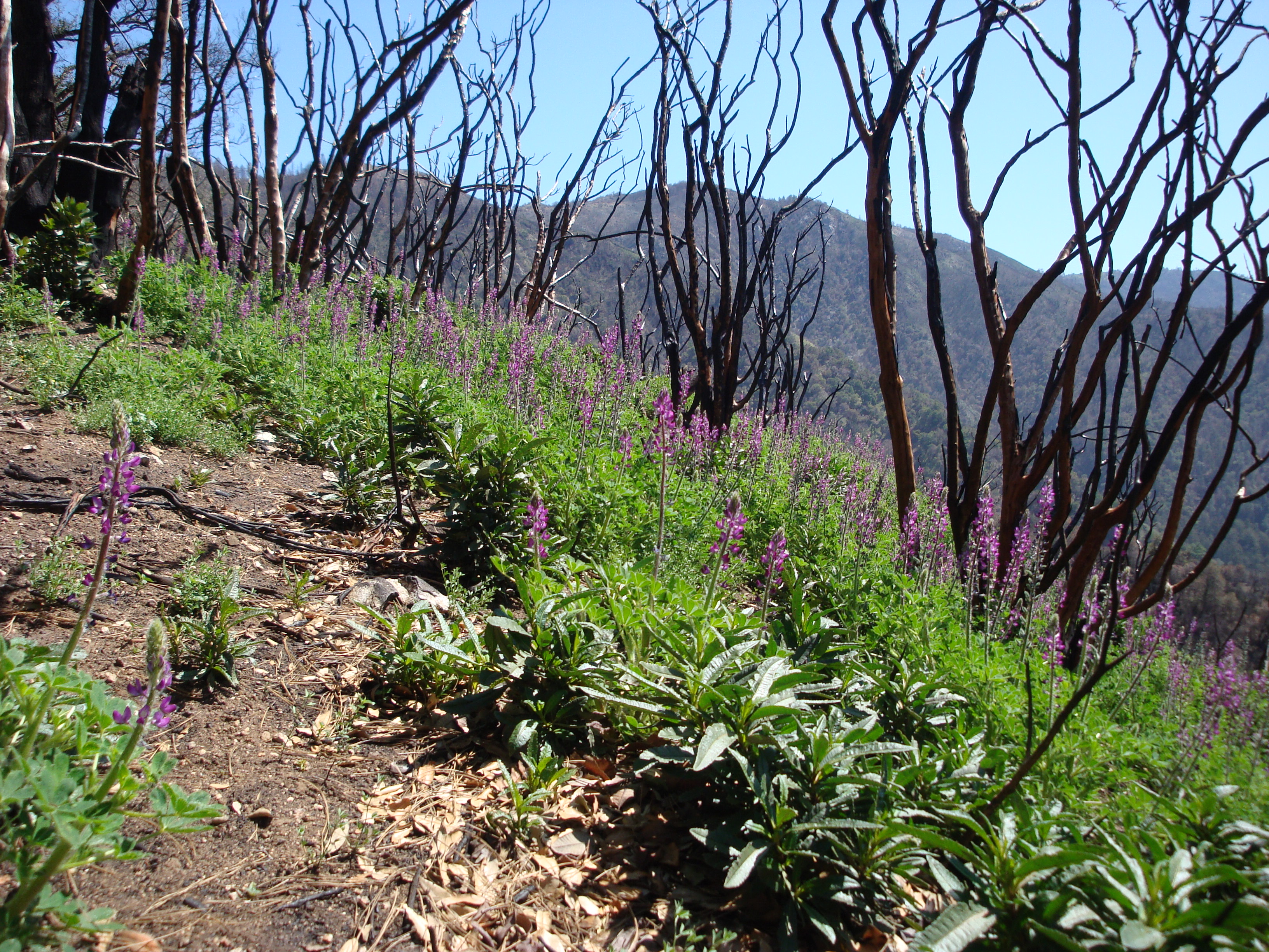 Stinging Lupine (Lupinus hirsutissimus) becomes the first plant to recolonize a severely burned slope.