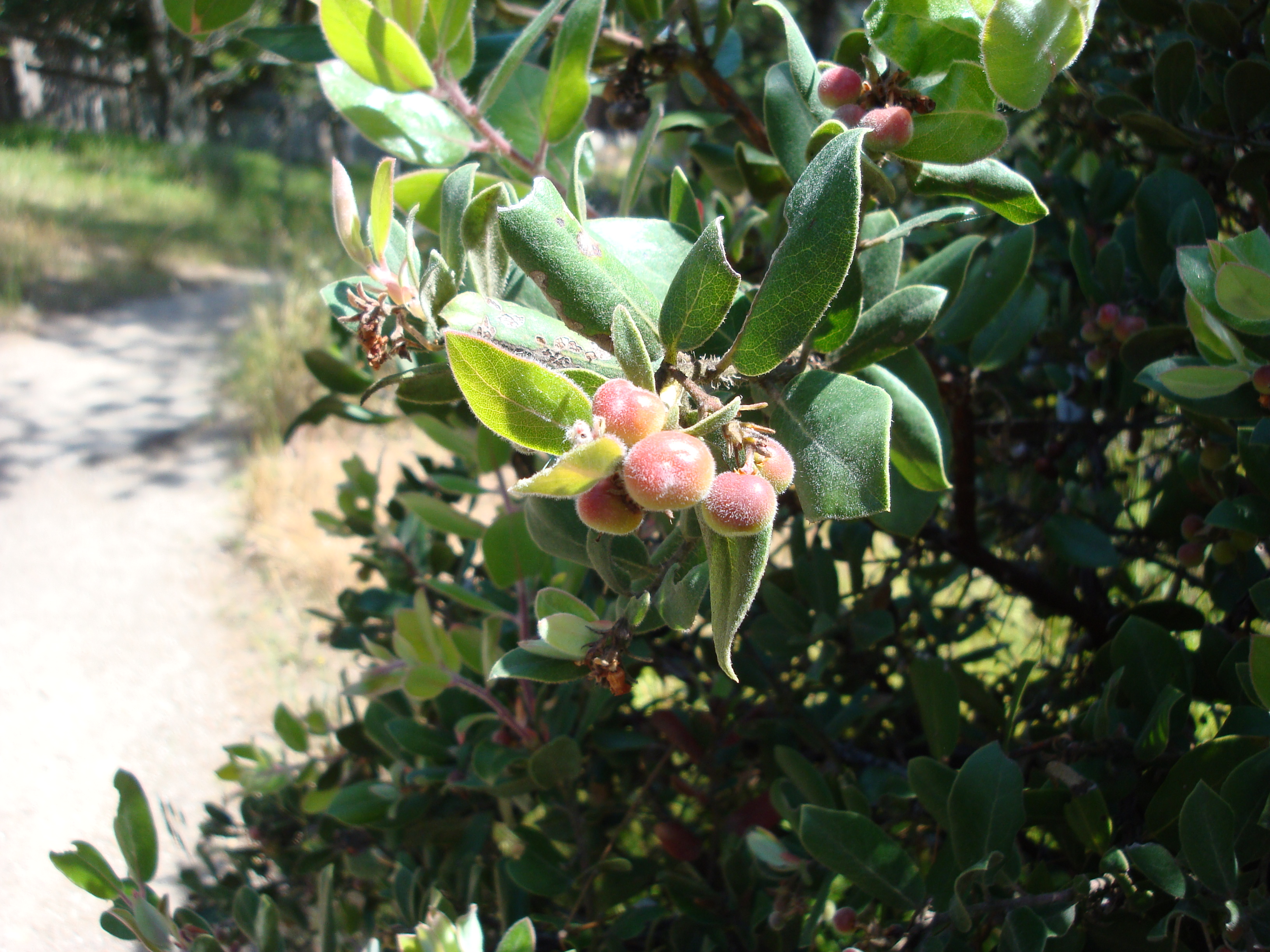 May 10, 2009The little apples: How manzanita got its name. Woollyleaf Manzanita (Arctostaphylos tomentosa) grows along the side of the “Parcel B” trail.