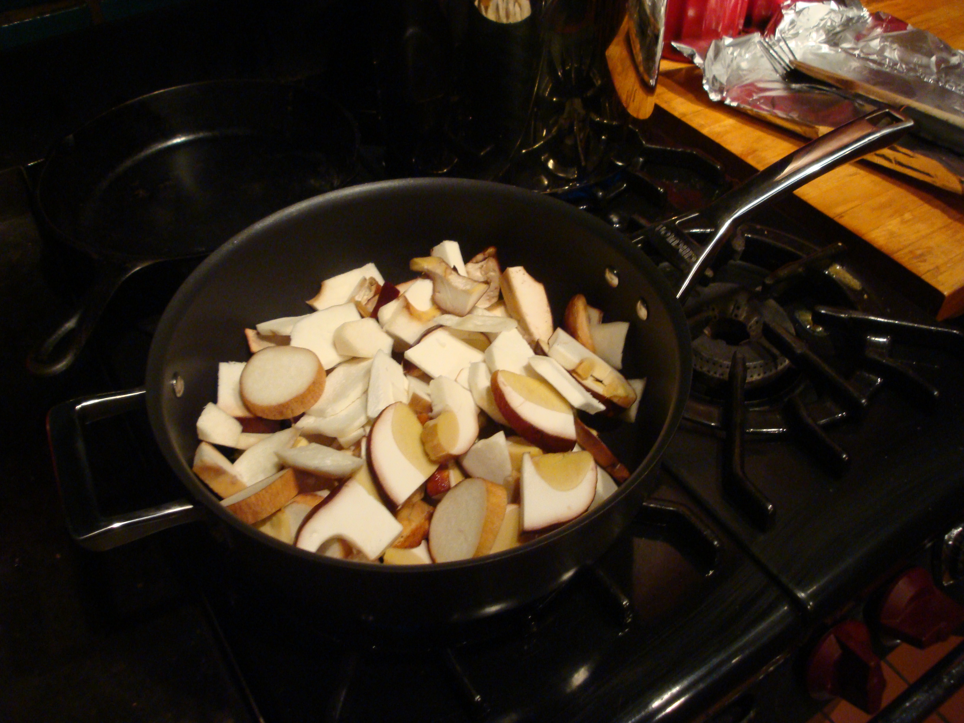 It’s usually hard to get boletes before Thanksgiving around here but, thanks to the heavy rain in mid-October, we’ve had a nice crop working for several weeks now. The average size is definitely smaller than in a good, let alone a “bonanza” year, but there are plenty of them and we’ve been having no trouble getting all we can handle.