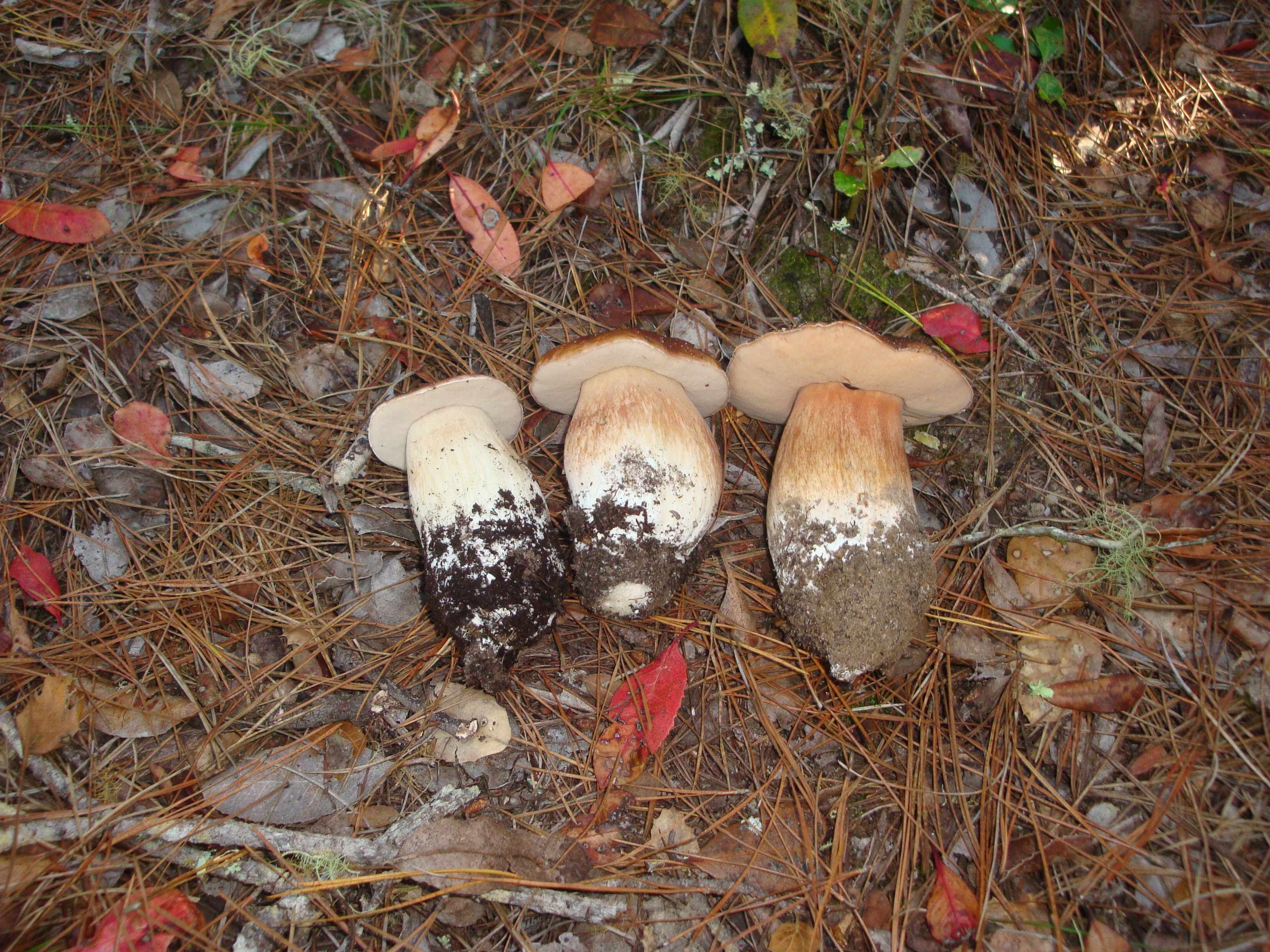 The day’s first keepers. They may not be large, but you don’t complain about Grade A, 100% worm-free boletes. Now it’s time to go check on some bolete buttons we found, and concealed, a couple of days ago.