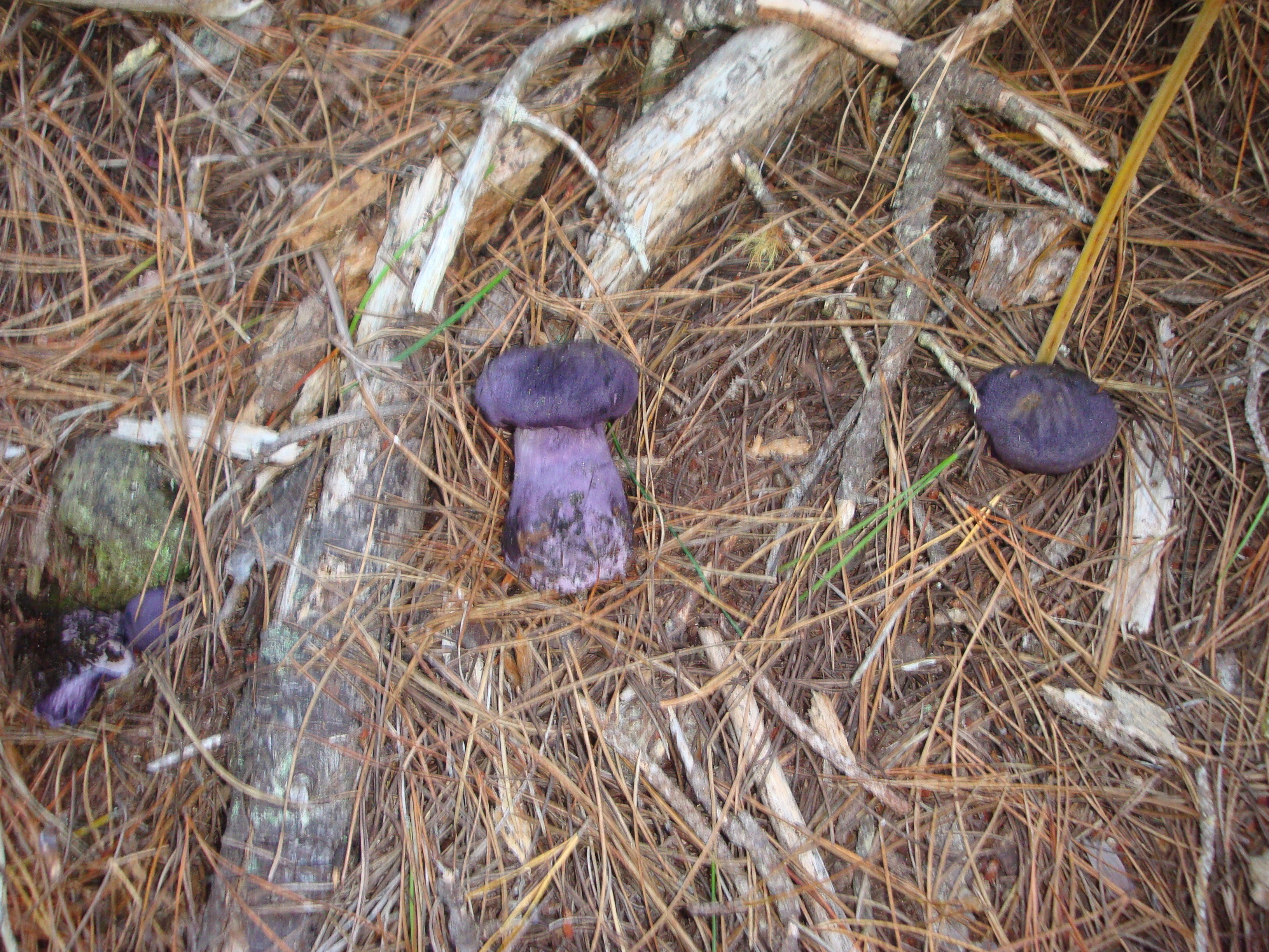 What the?? We may not be taking them home to eat but, to a confirmed fungophile, these bolete-shaped purple mushrooms are definitely the find of the day. They appear to be the rare Cortinarius violaceus – a mushroom we’ve never even seen before. How cool is that?