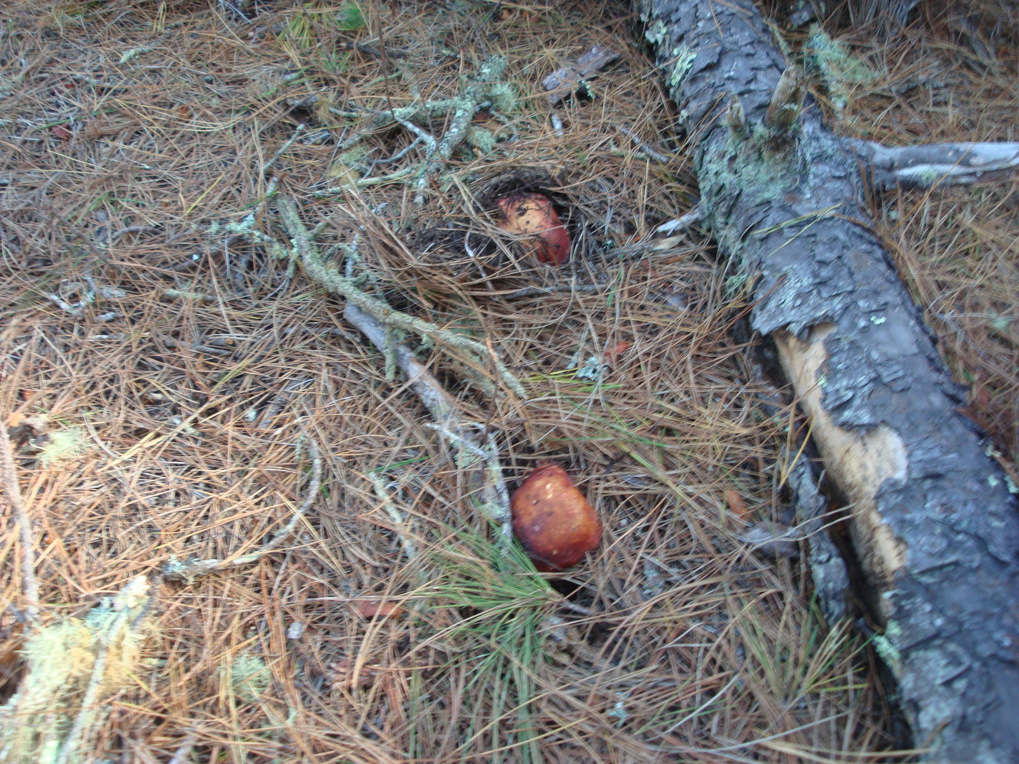 arora’s book, “all the rain promises” is a good helper for identifying the often confused shrimp mushroom. i then to find lots of shrimp mushrooms under the bulging pine duff near boletes and pine spikes.