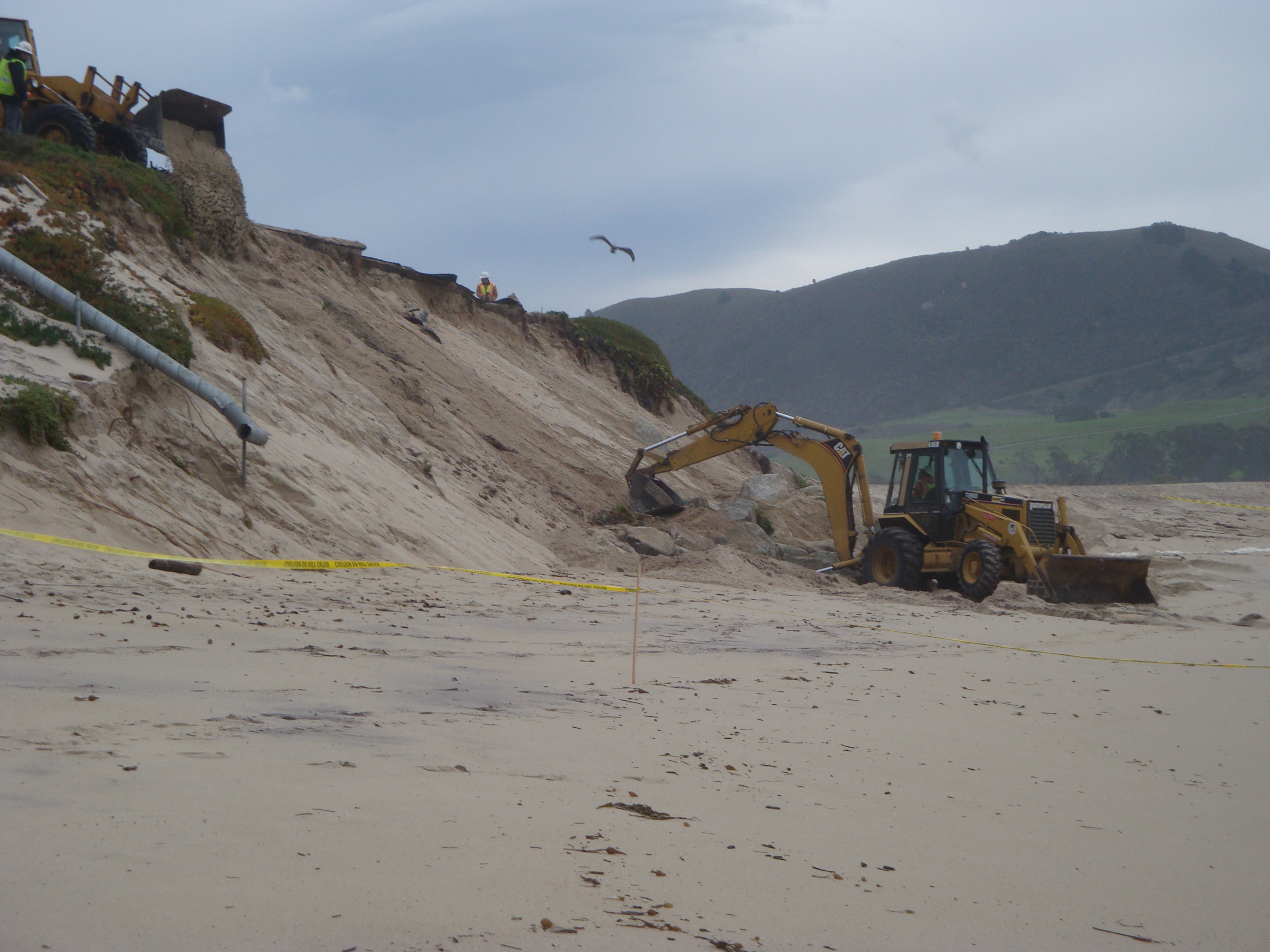 Meanwhile, back on the Central Coast, the moderately large waves generated by the past week of storms are putting on an excellent demonstration of how coastal erosion works.