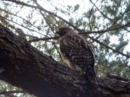 Protecting the flowers from rodent predation – camouflaged in the pine branches, a hawk keeps watch over Mound Meadow.