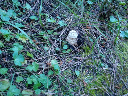 A Pine Cone Amanita (Amanita magniverrucata) – ¡Potentially deadly poisonous, don’t try it! – erupts from the forest floor near the Whaler’s Cottage.