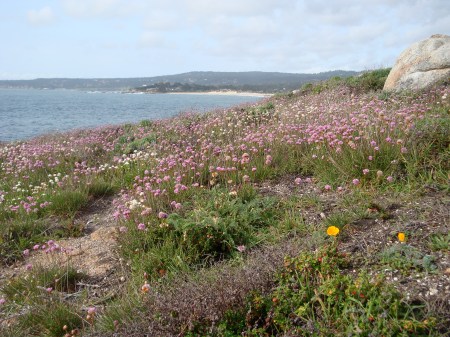 A field of flowers overlooks Carmel Bay at the park’s northern end.
