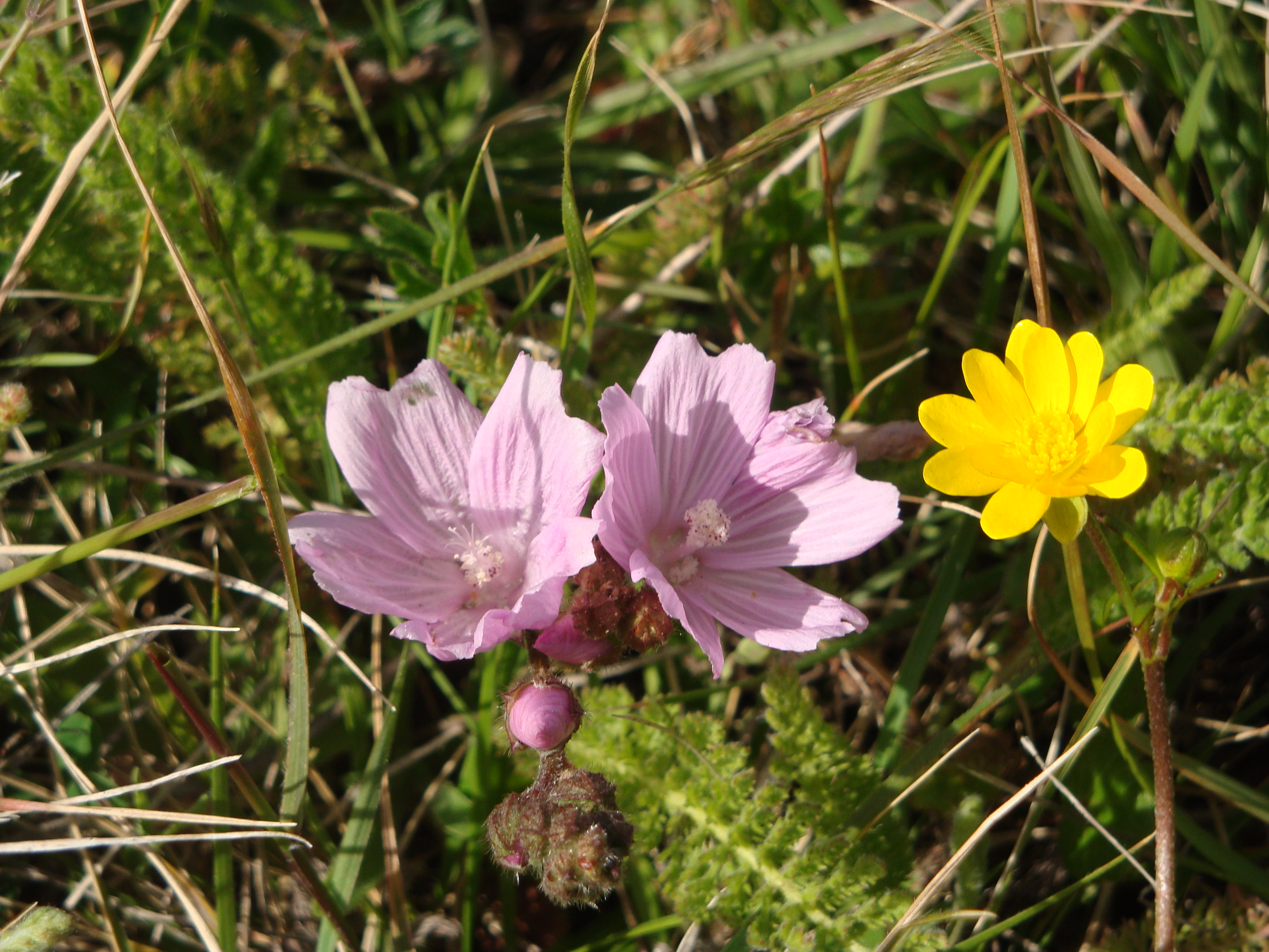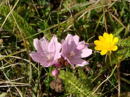 Checkerbloom (Sidalcia malvaeflora ssp. malvaeflora) and California Buttercup (Rununculus californicus) on the South Shore.