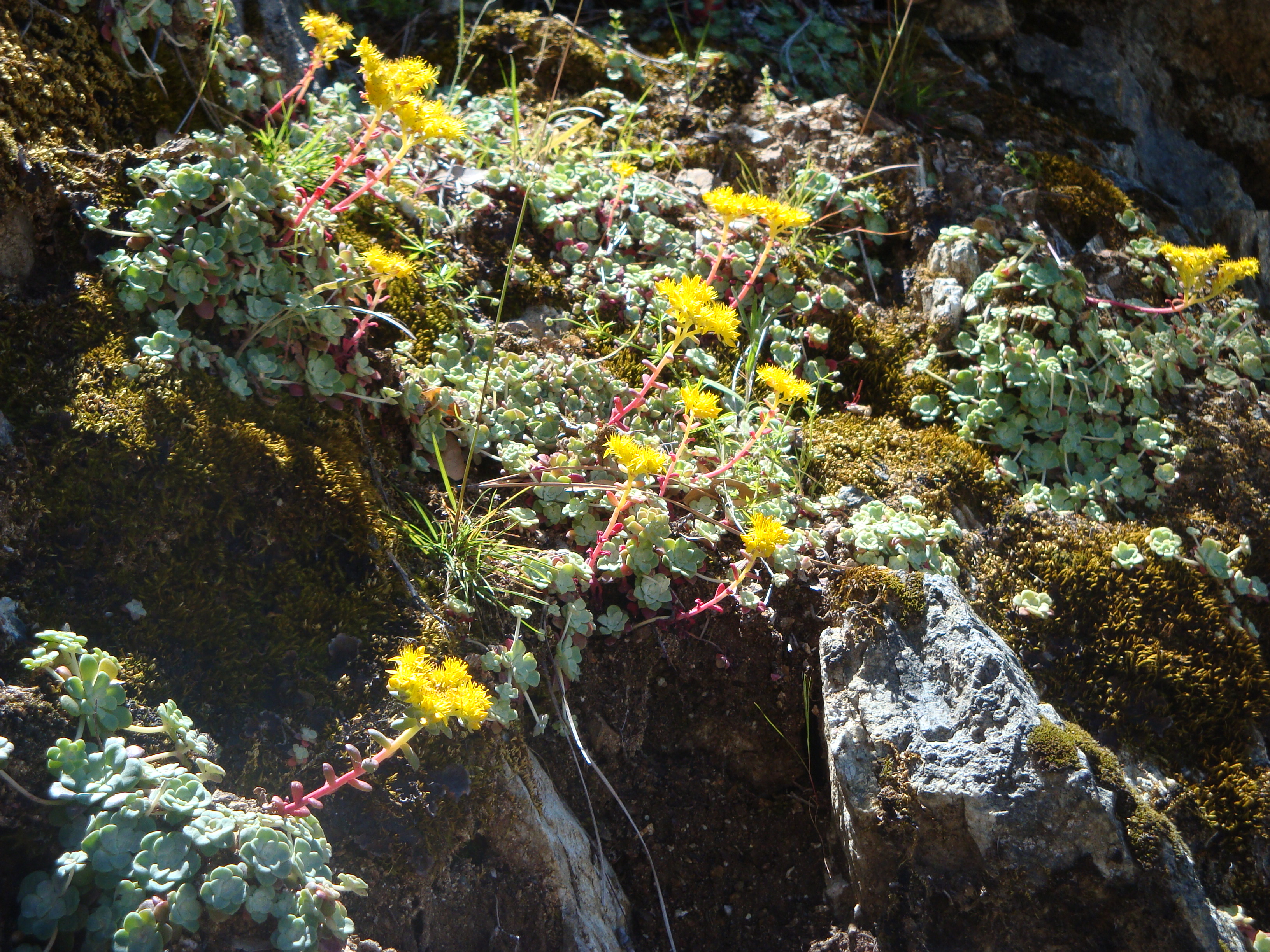Pacific Stonecrop (Sedum spathulifolium) blooming nearby