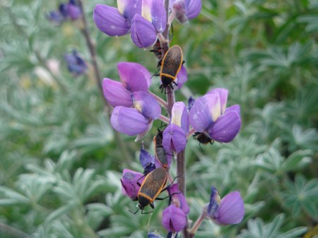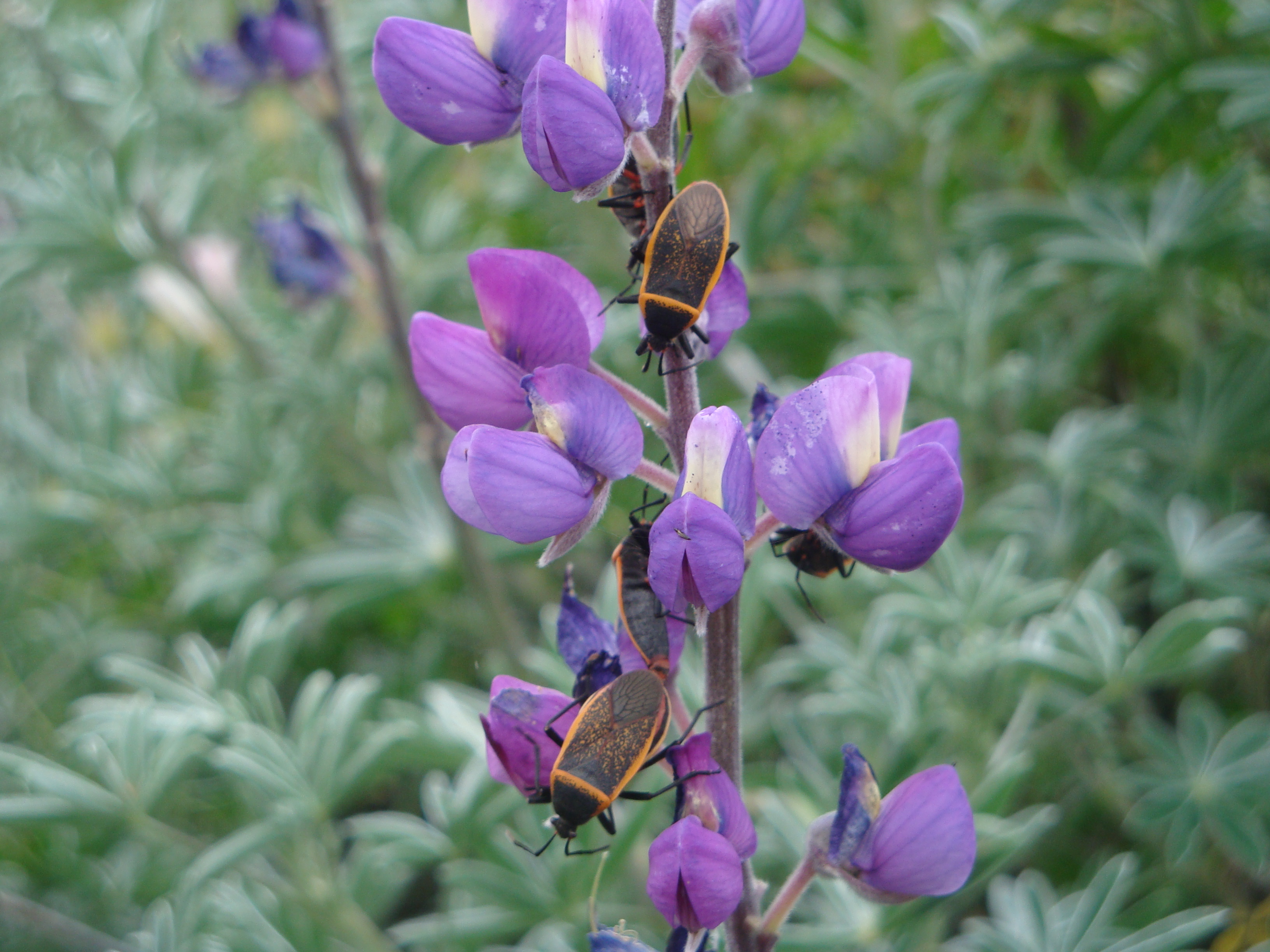 The silver lupine is a world of its own. This flower stalk belongs to the bordered plant bugs (presumably Largus californicus).