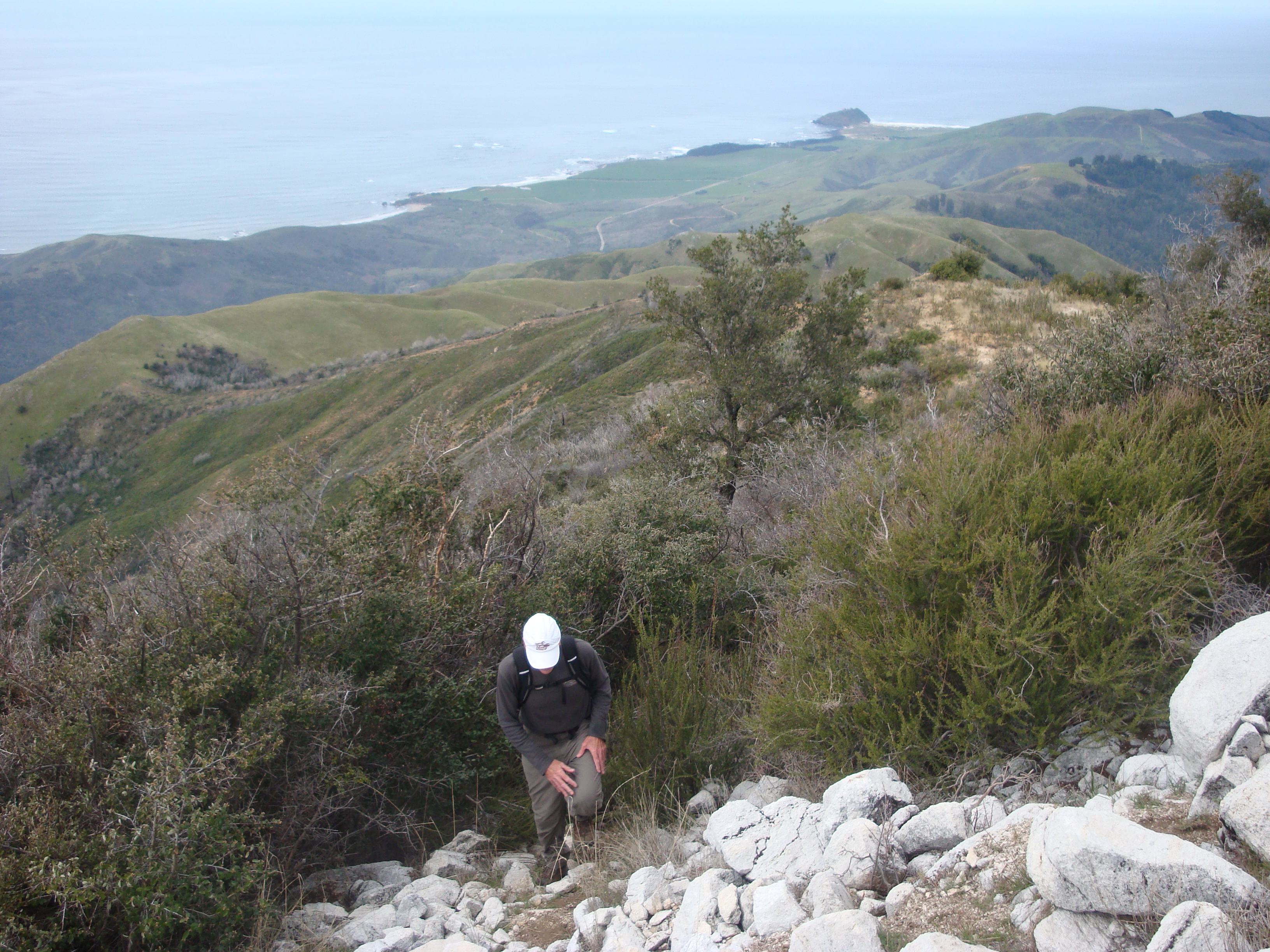 The final scramble. With grassy East Molera Ridge and Pt. Sur in the background.