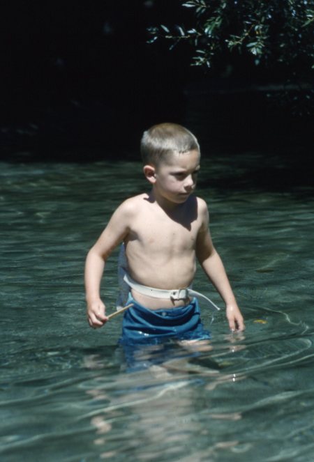 No. This was no swimming hole. It was the big concrete pool inside the State Park (on the east side of the river near the picnic grounds). Water, diverted from the river, flowed into the upper end of the pool and out from the lower end. And, yes, I was quite a bit cuter then.