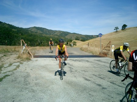 Crossing the Arroyo Seco River – these cyclists are headed in the wrong direction, but you get the idea