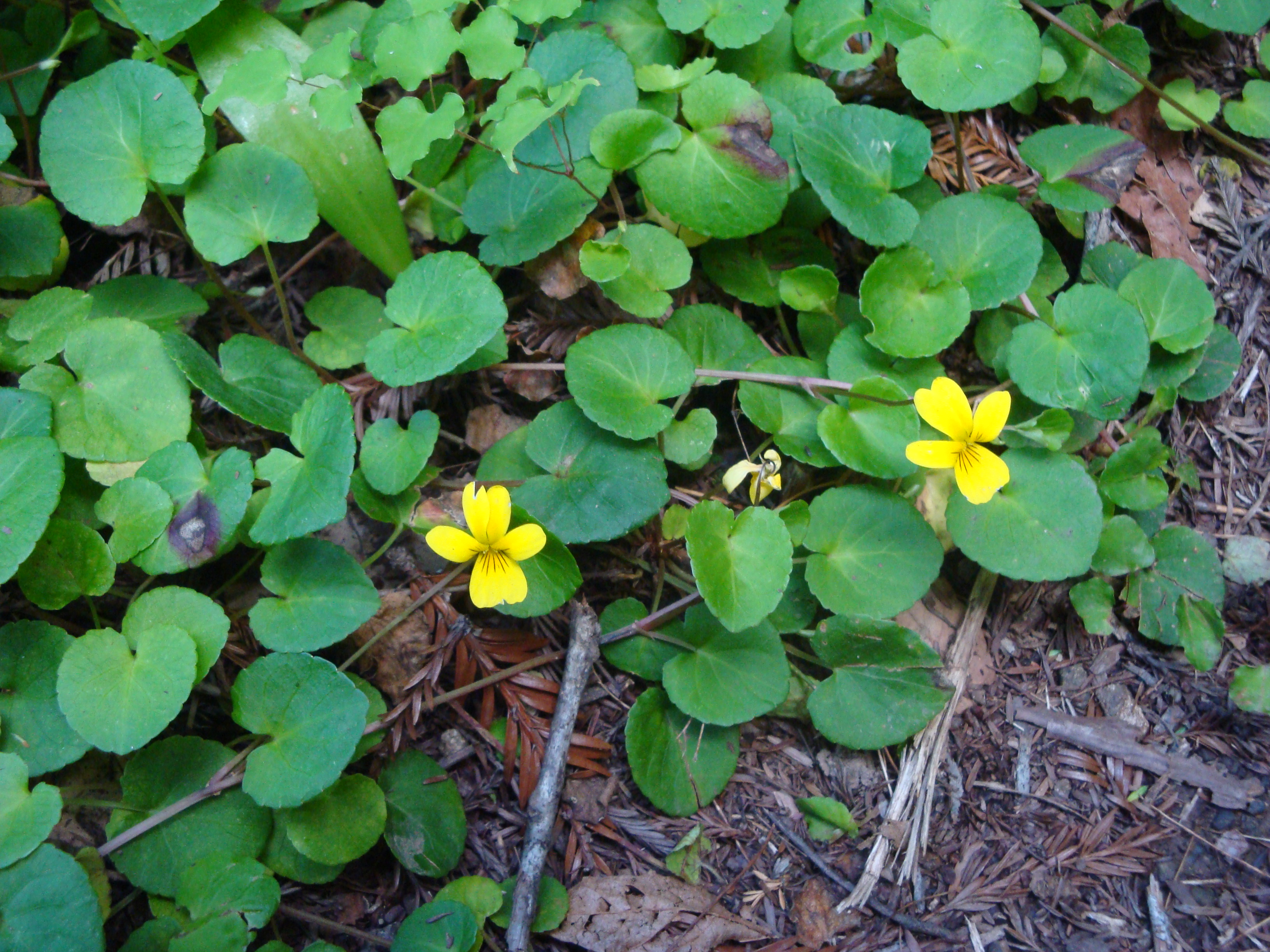 These little yellow violets (Viola glabella – or are they Viola sempervirens?) are also abundant on the forest floor.