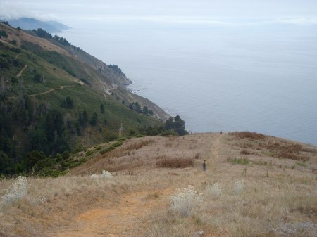 The Boronda Trail begins about half a mile south of the Coast Gallery (look for a grove of small pines and an old cattle chute) and ends on the Coast Ridge Rd. at Timber Top. There’s no sign announcing the trail at the start, but there may be some Forest Service signs urging you to pack out trash, etc.