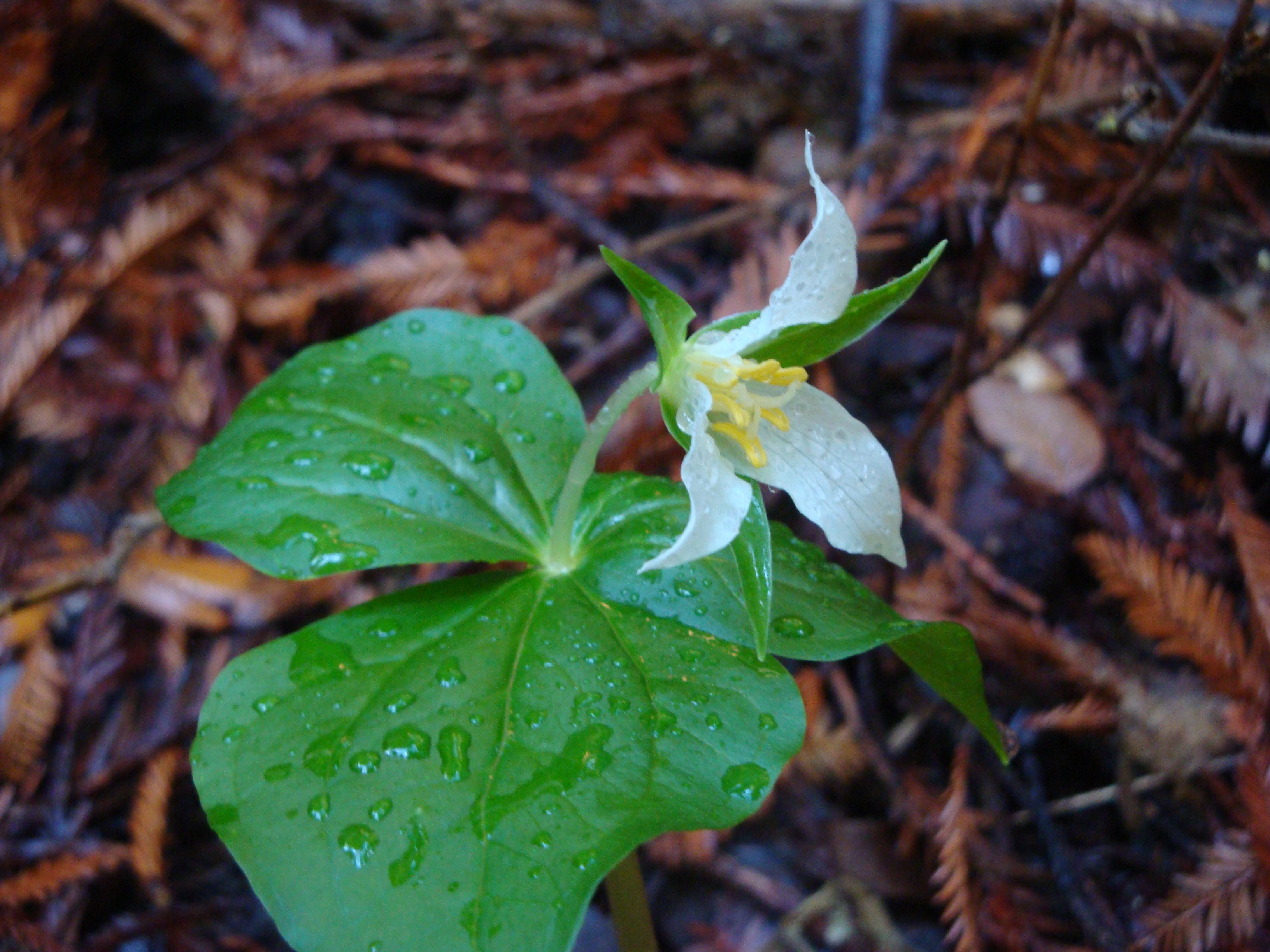 T. ovatum works to colonize its immediate surroundings by spreading its rhizomes out beneath the duff of the forest floor. It also seeks to reach new habitats by producing seeds attached to a delicious – to ants and slugs, anyway – structure called an elaiosome. The plant counts on the ants hauling the elaiosomes, seeds and all, to distant nests and discarding the seeds there. Recent research, however, suggests that this isn’t going so well. Seed carrying ants are now rare in the wet forests where T. ovatum thrives, and the elaiosomes are being eaten by banana slugs who simply knock the seeds off on the spot.