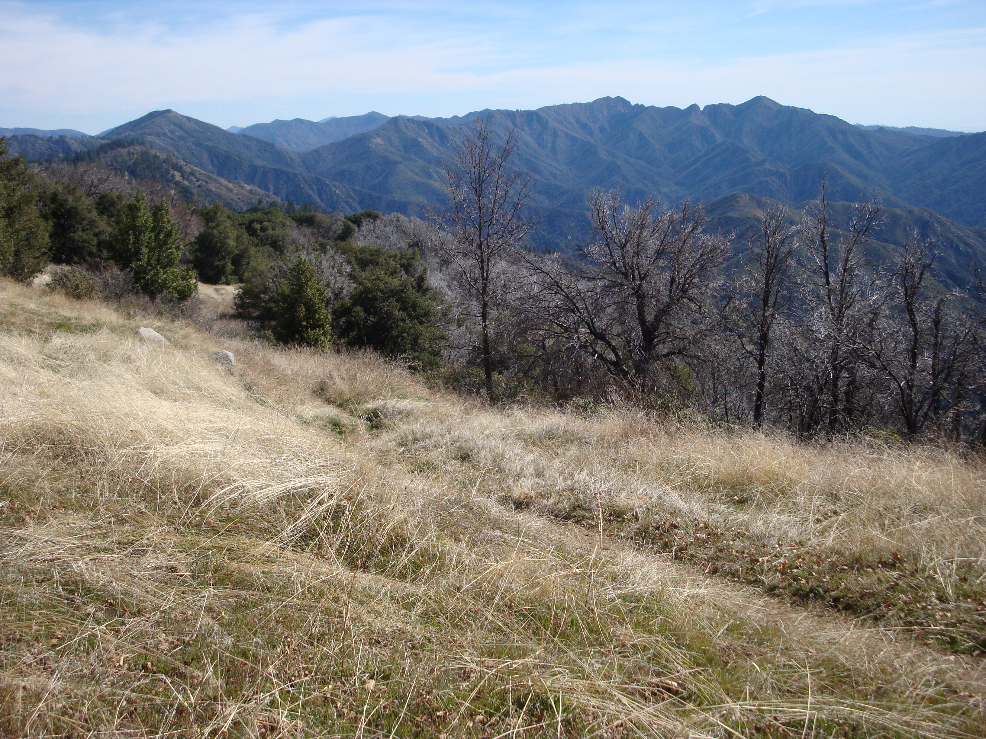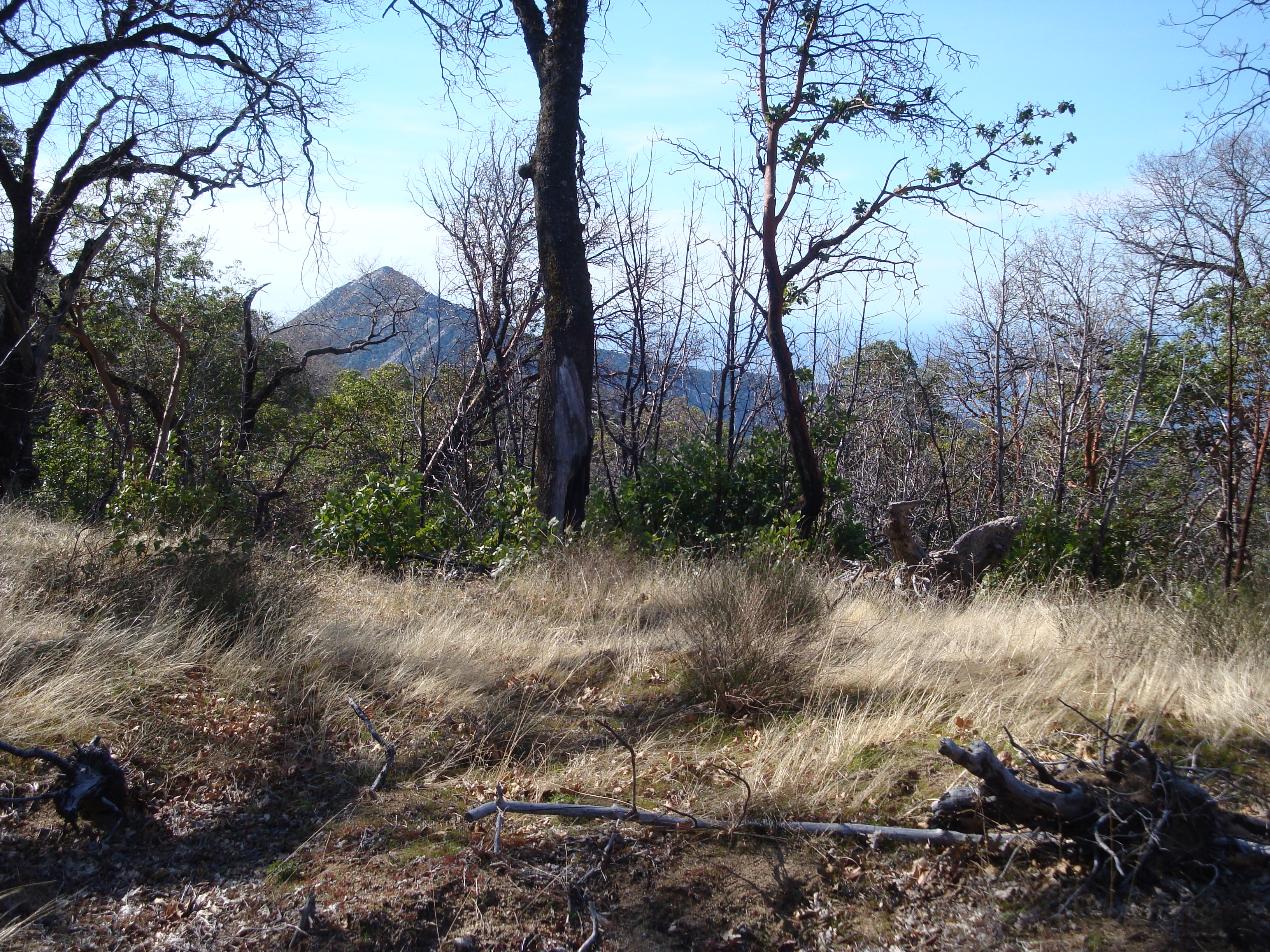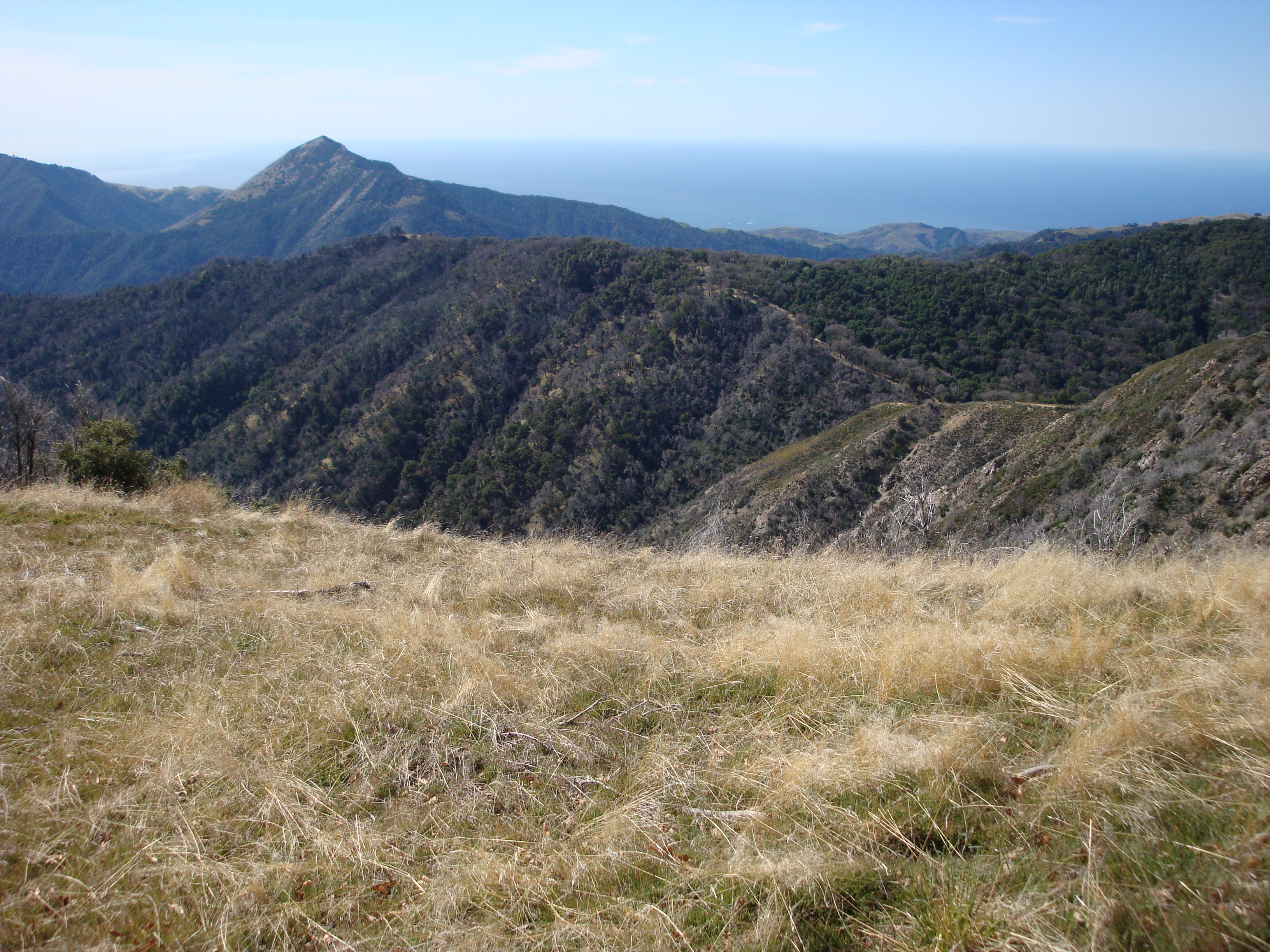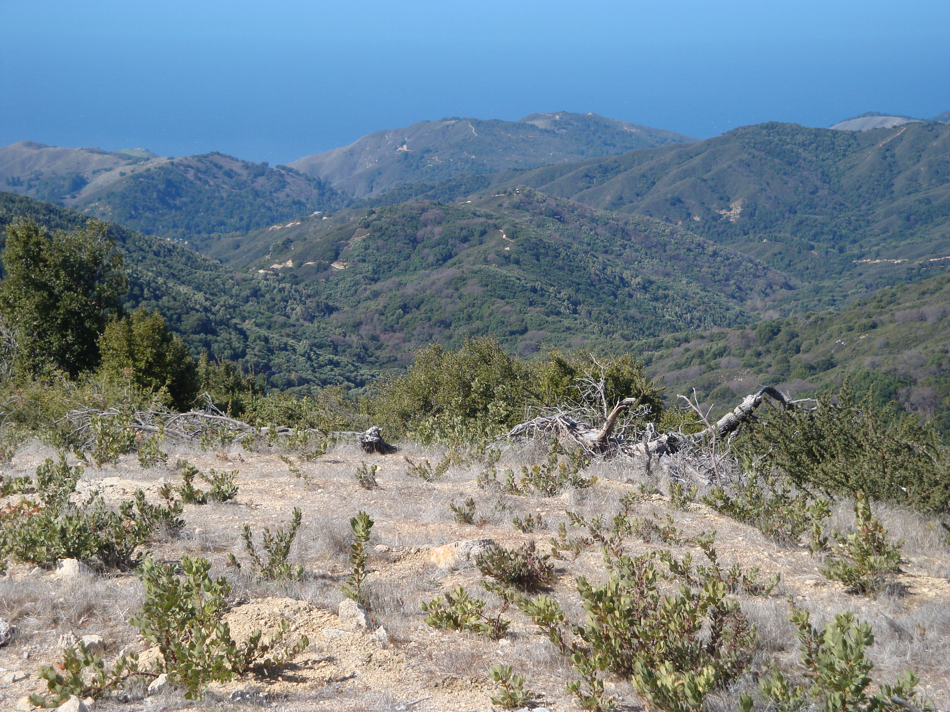 The views of Pico Blanco and the ocean from Skinner Ridge are at their best in the winter, when the black oaks (Quercus kelloggii) are leafless.