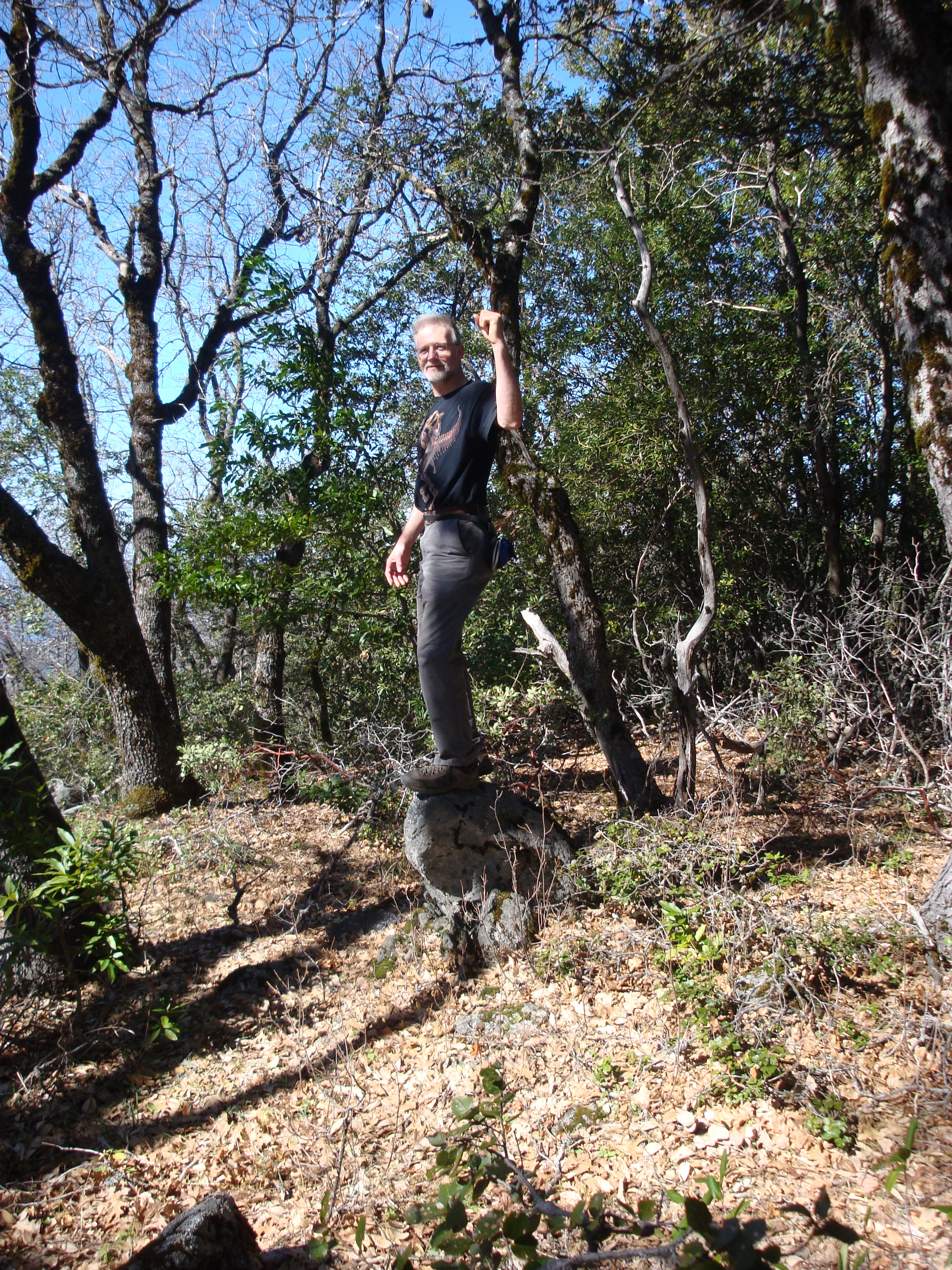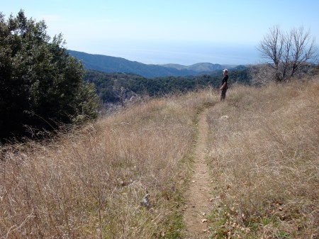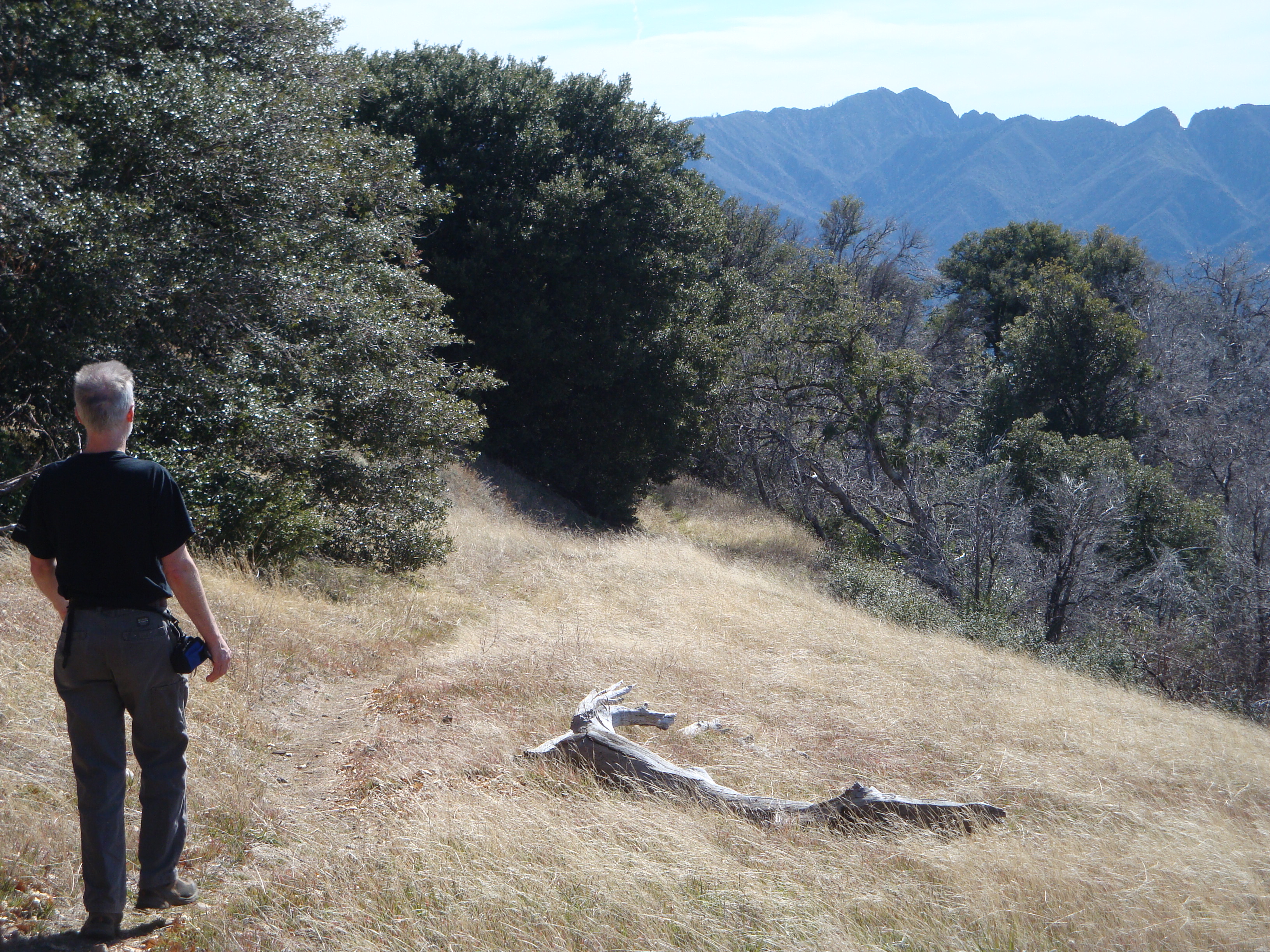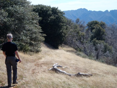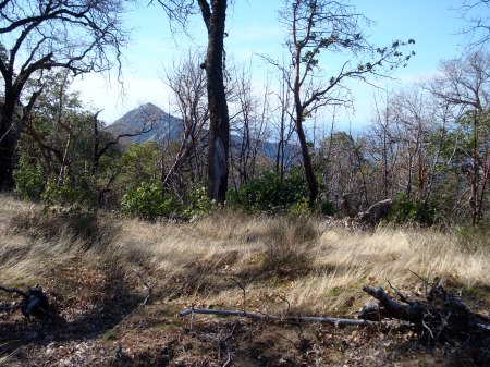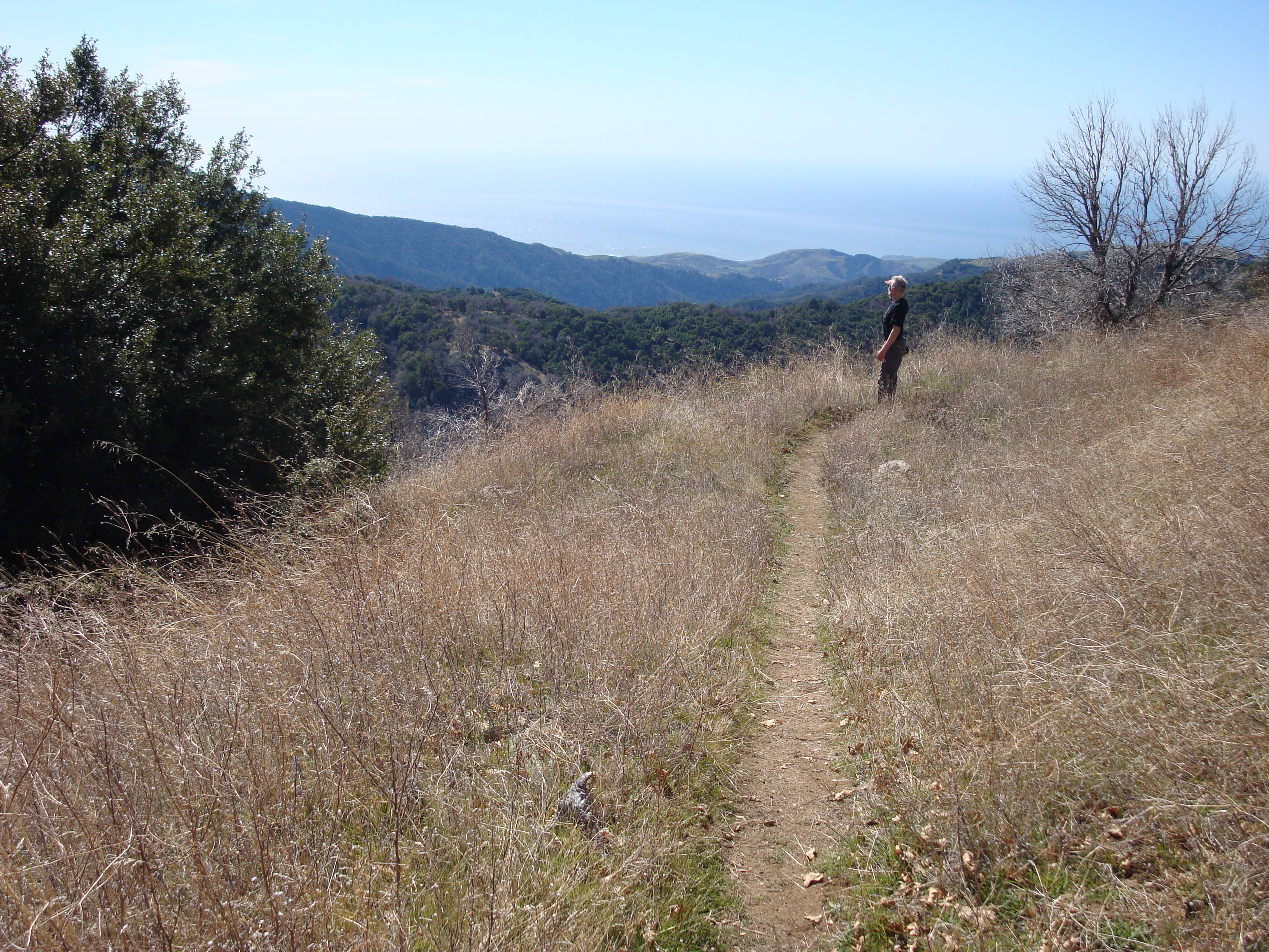 The views of Pico Blanco and the ocean from Skinner Ridge are at their best in the winter, when the black oaks (Quercus kelloggii) are leafless.