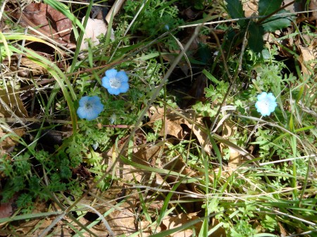 Ah, the backyard. Amazing (though not surprising) to see the grasses on Devil’s Peak so tawny in February. And baby blue eyes always console and give me hope.