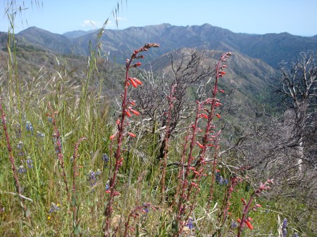 Scarlet Bugler (Penstemon centranthifolius) blooming on the lower slopes of Devil’s Peak in the Ventana Wilderness.
