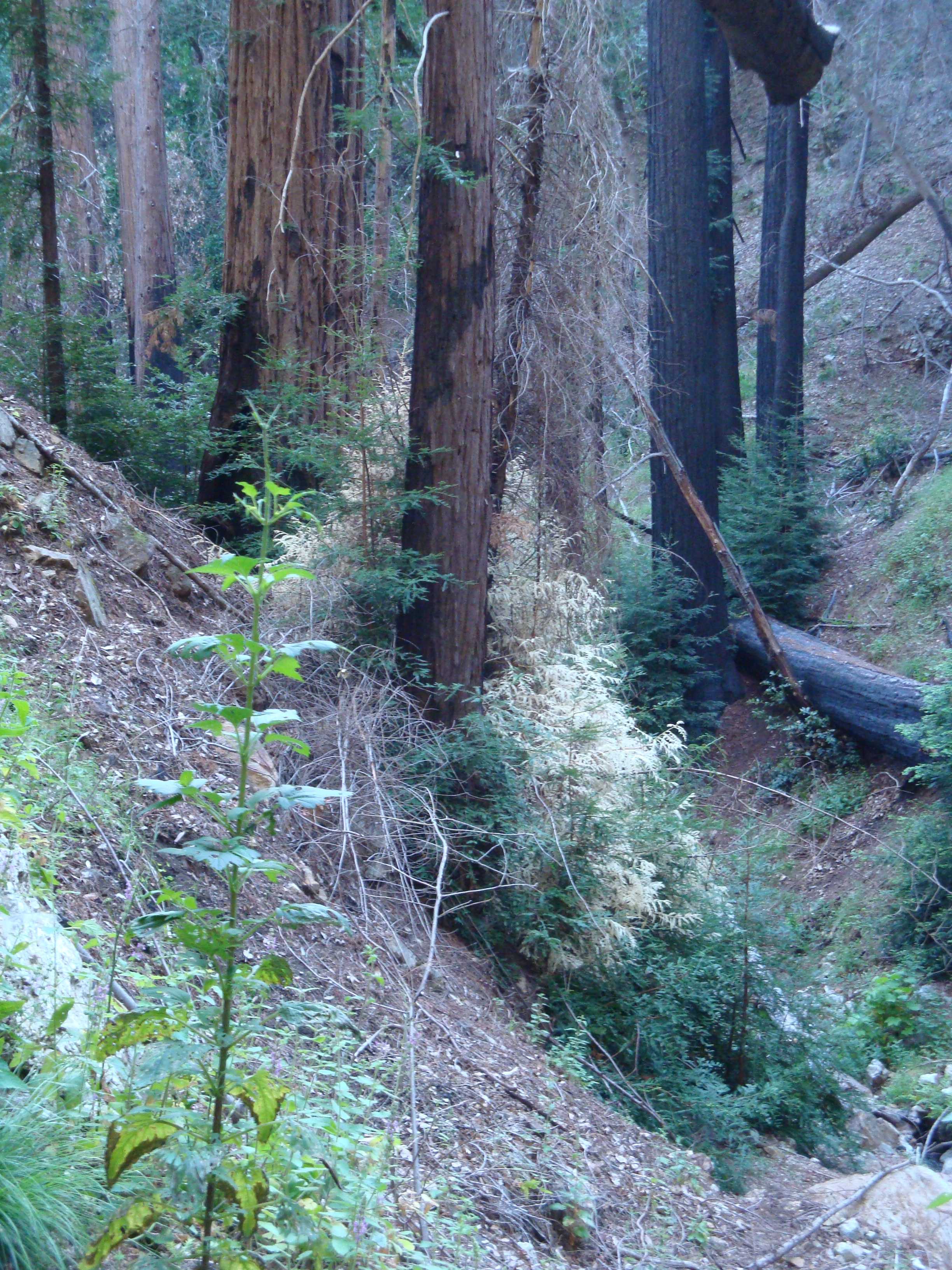 And now, this unusually vigorous white redwood is rising once again from the ashes. The phoenix tree of Big Sur.