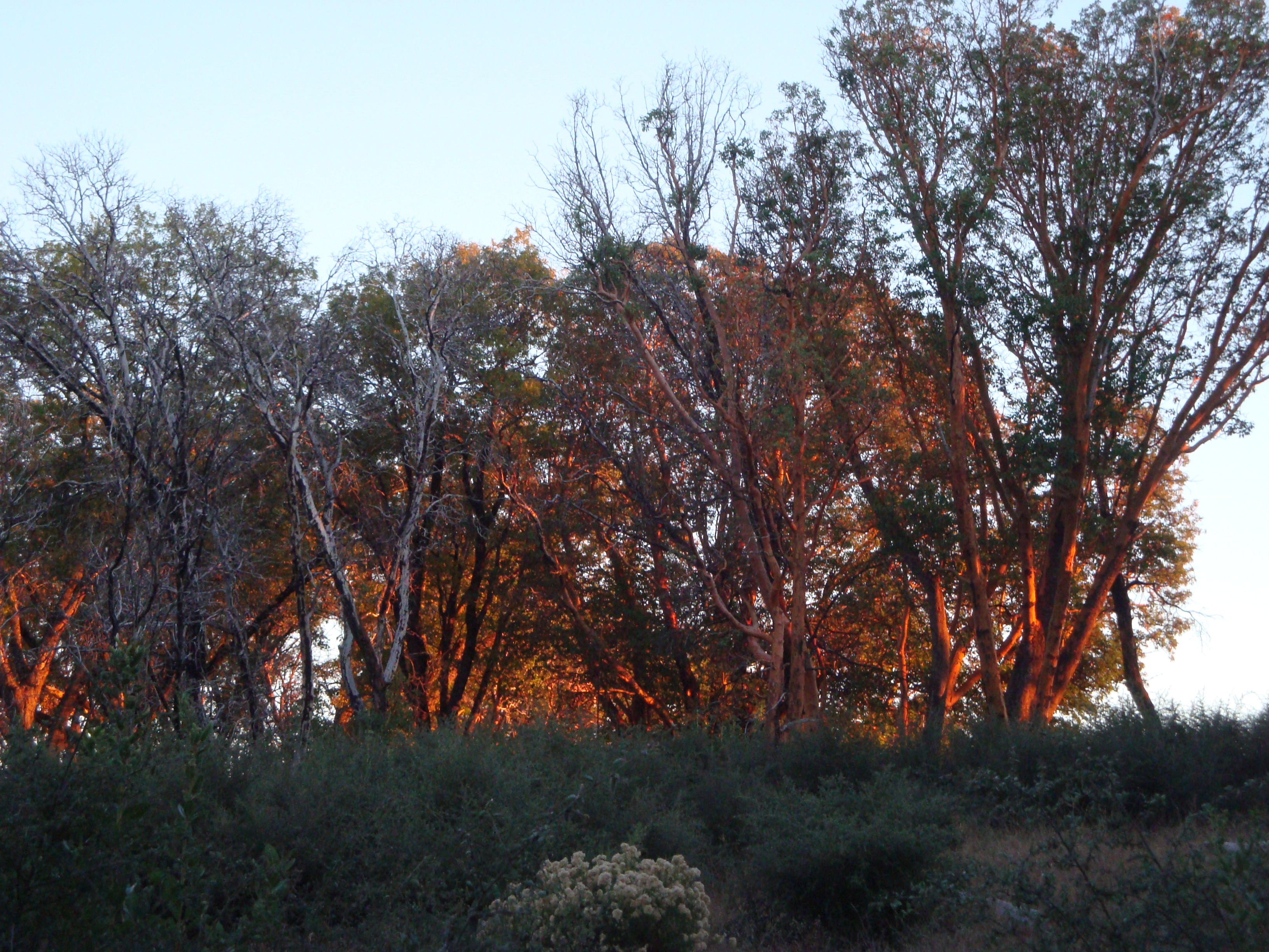 Skinner Ridge madroños (Arbutus menziesii) at sunset