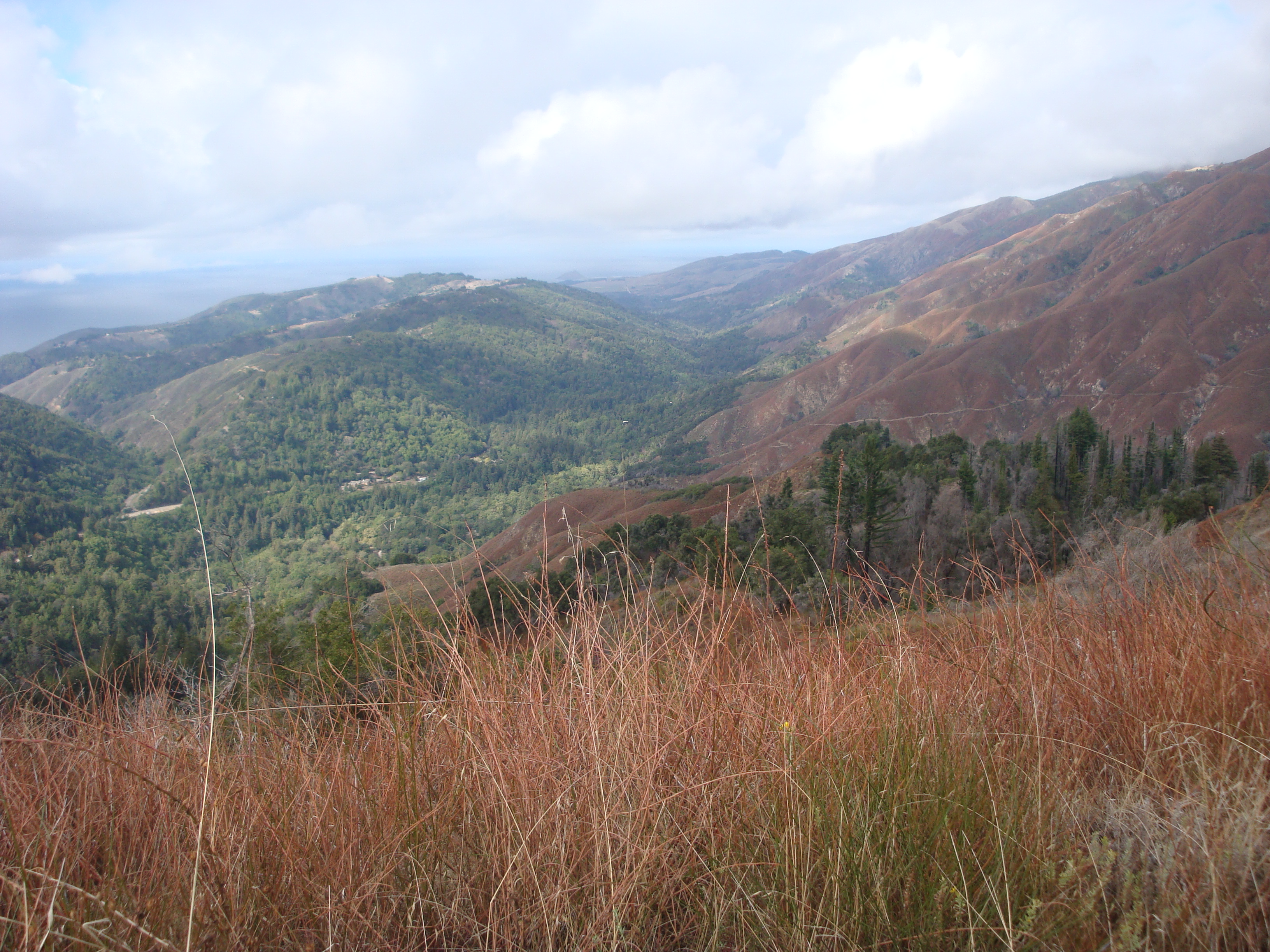 The Big Sur Valley with Pfeiffer Ridge, thickly carpeted in green forest, as it appeared in October, 2010.