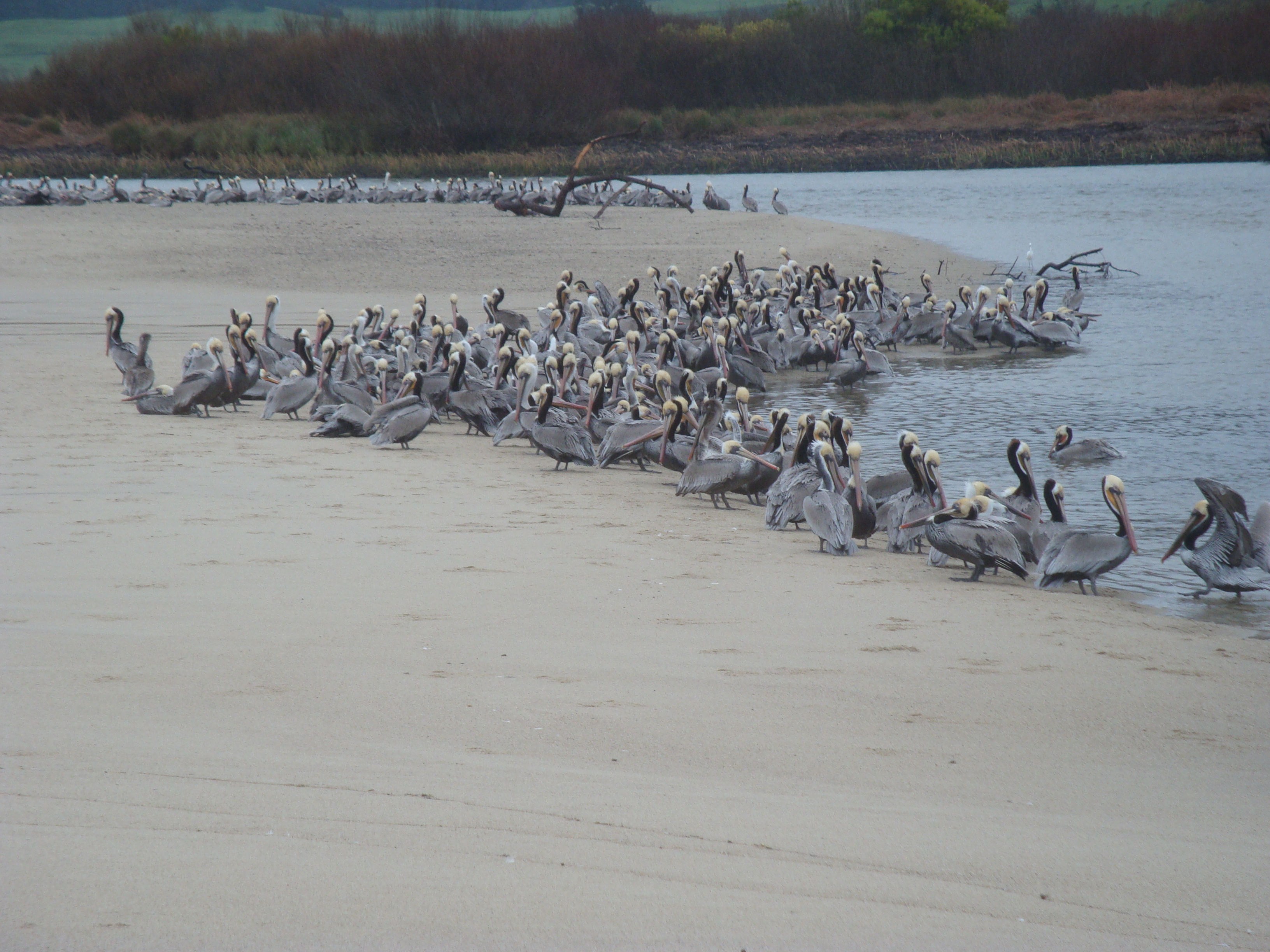 January 26, 2010: With the lagoon nearly dewatered again, Pelicans flock to eat the fish.