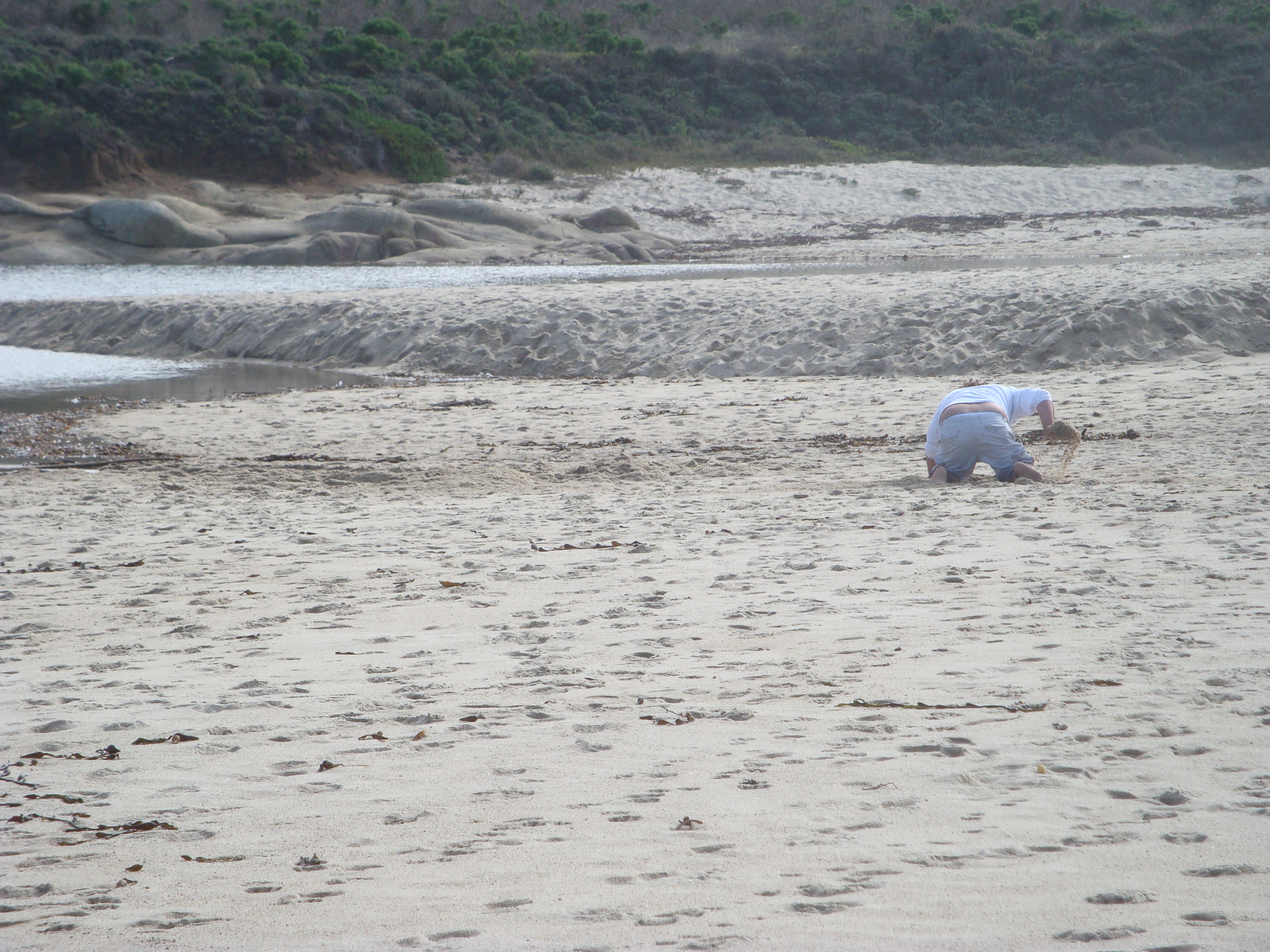 November 22, 2009: Not all unnatural breaches are caused by the County. When the lagoon level gets close to the top of the sandbar, some people find the temptation to create a breach irresistible.