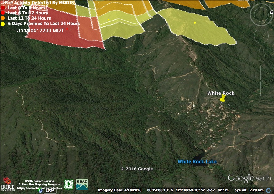 The satellite found active fire closer than ever to Rancho San Carlos early this morning, but no indication of fire advancing on White Rock.