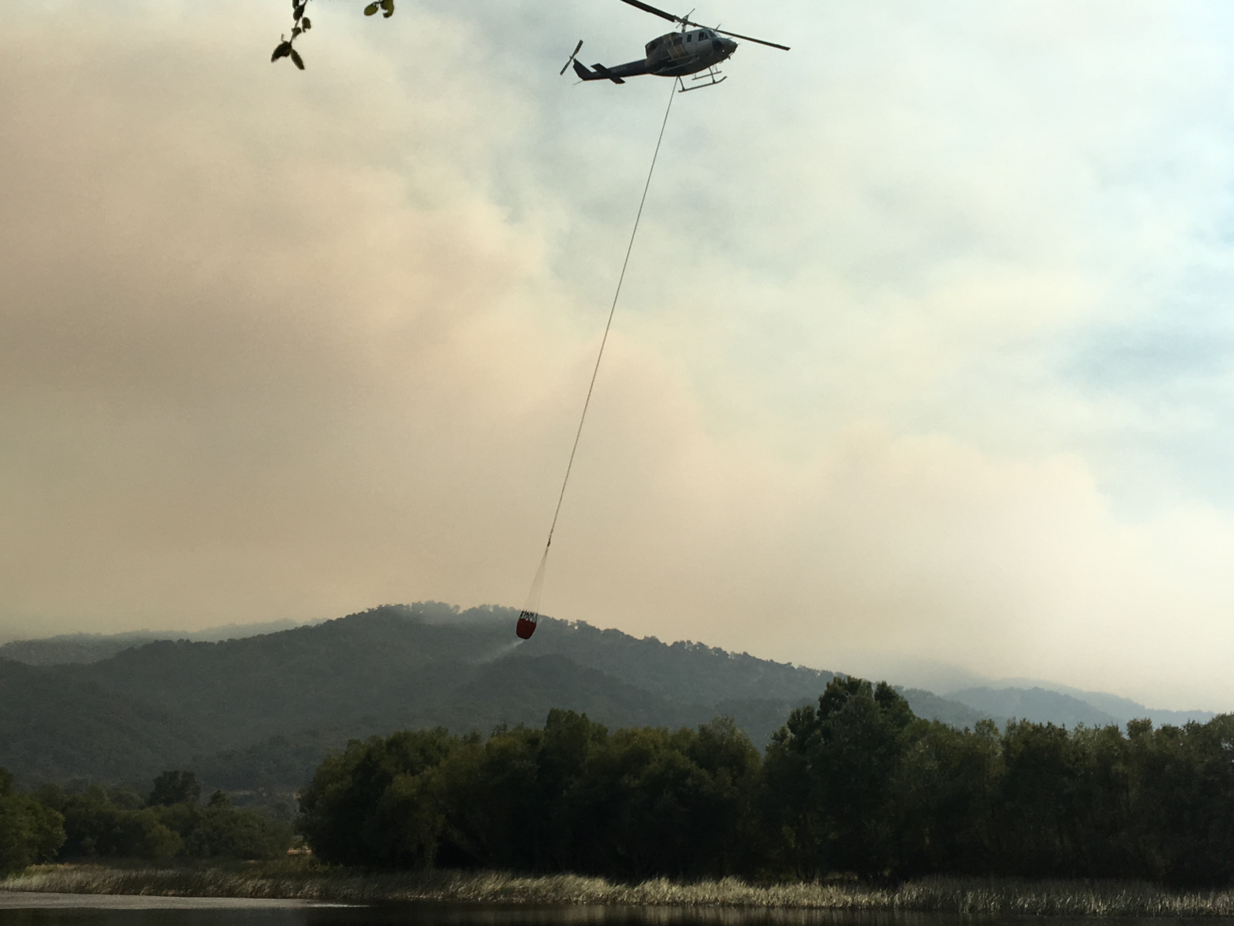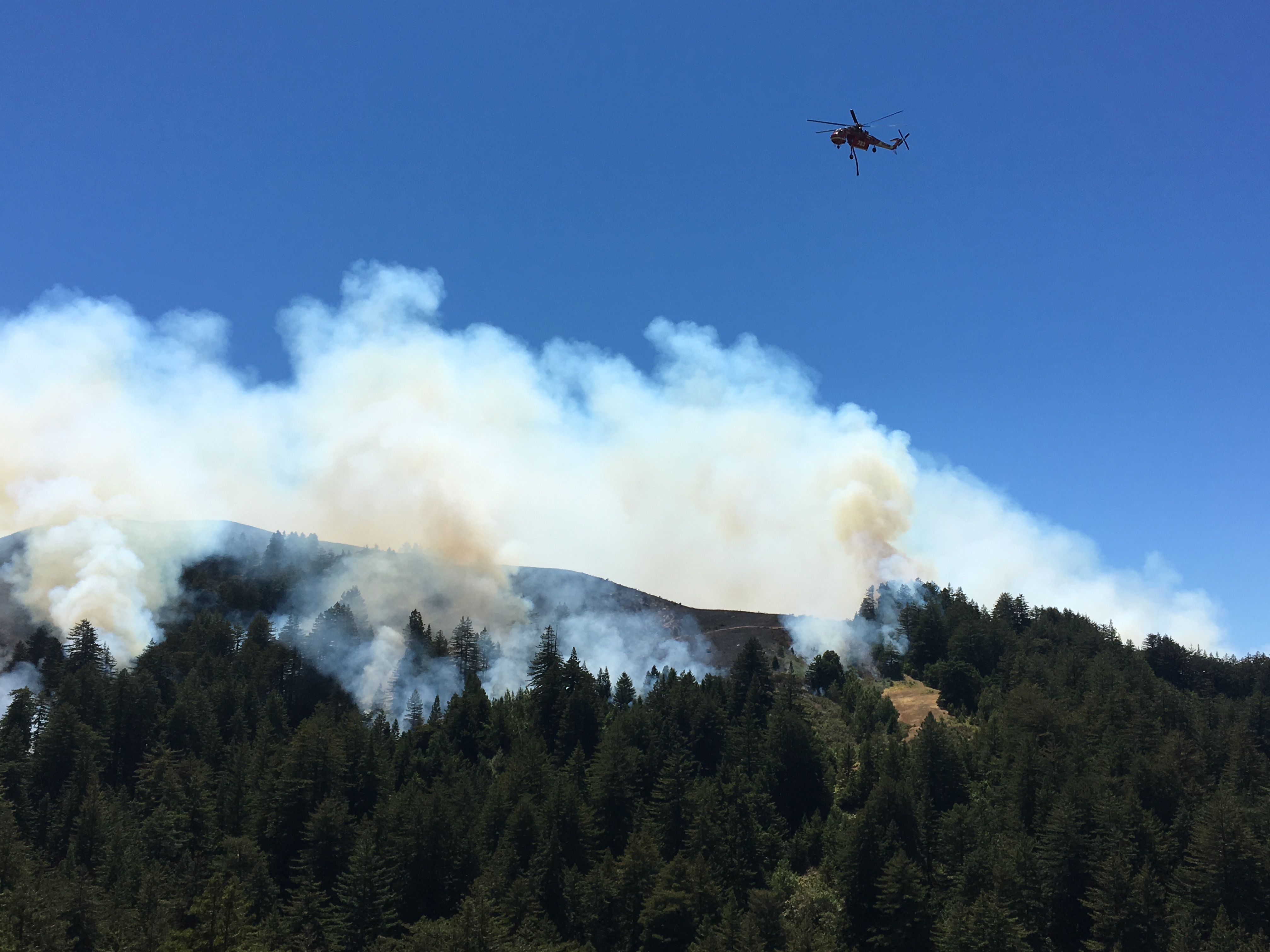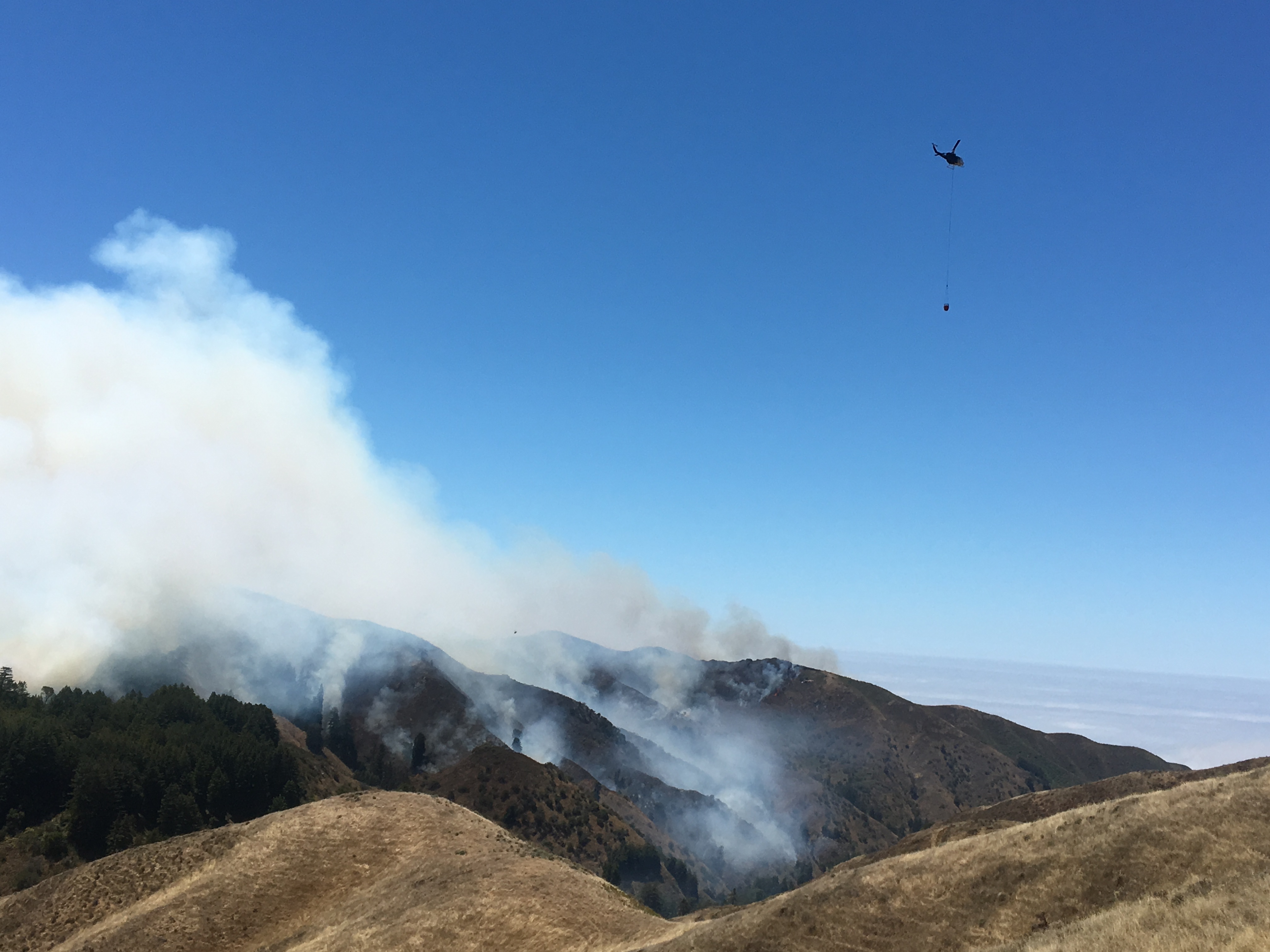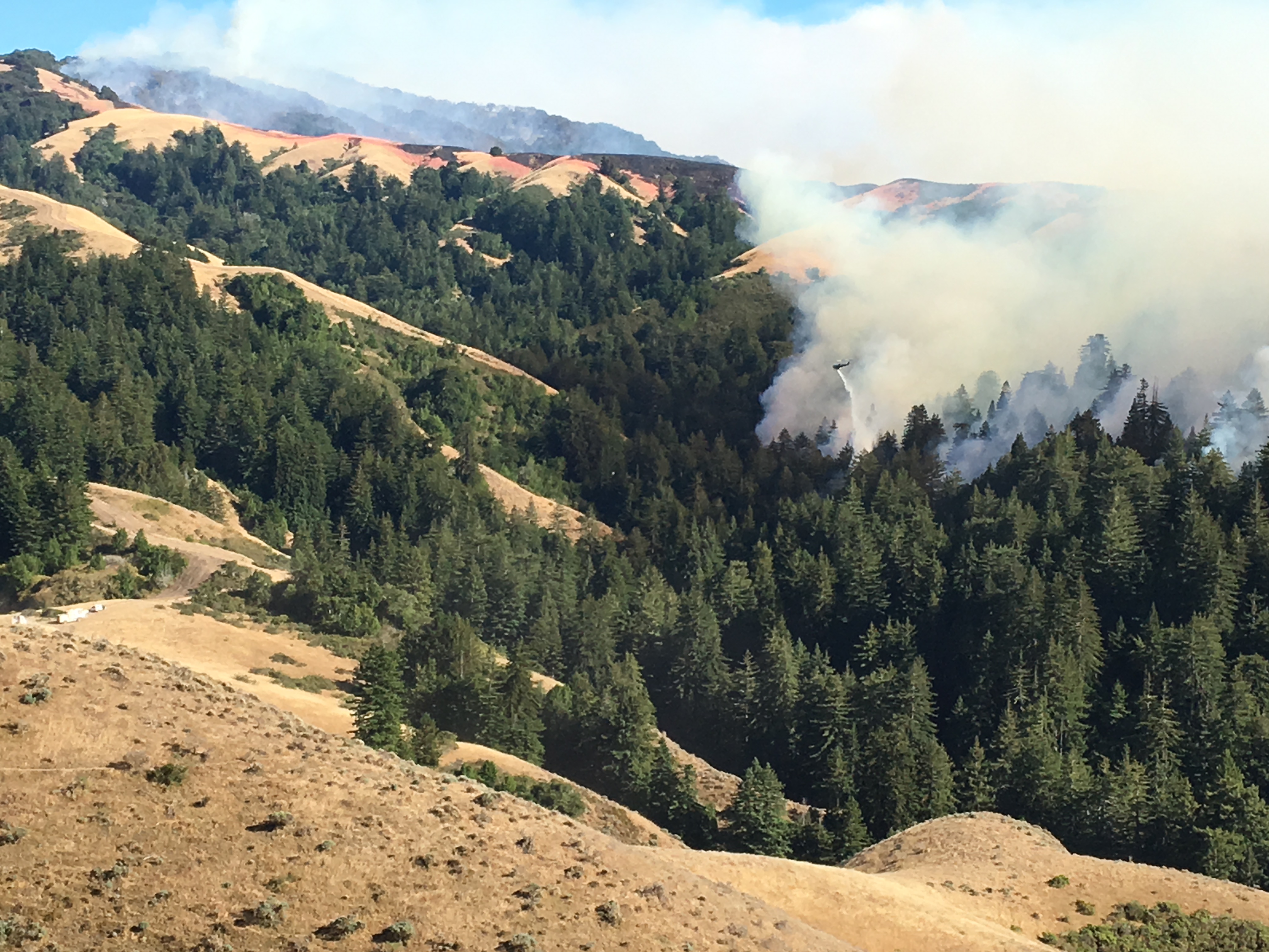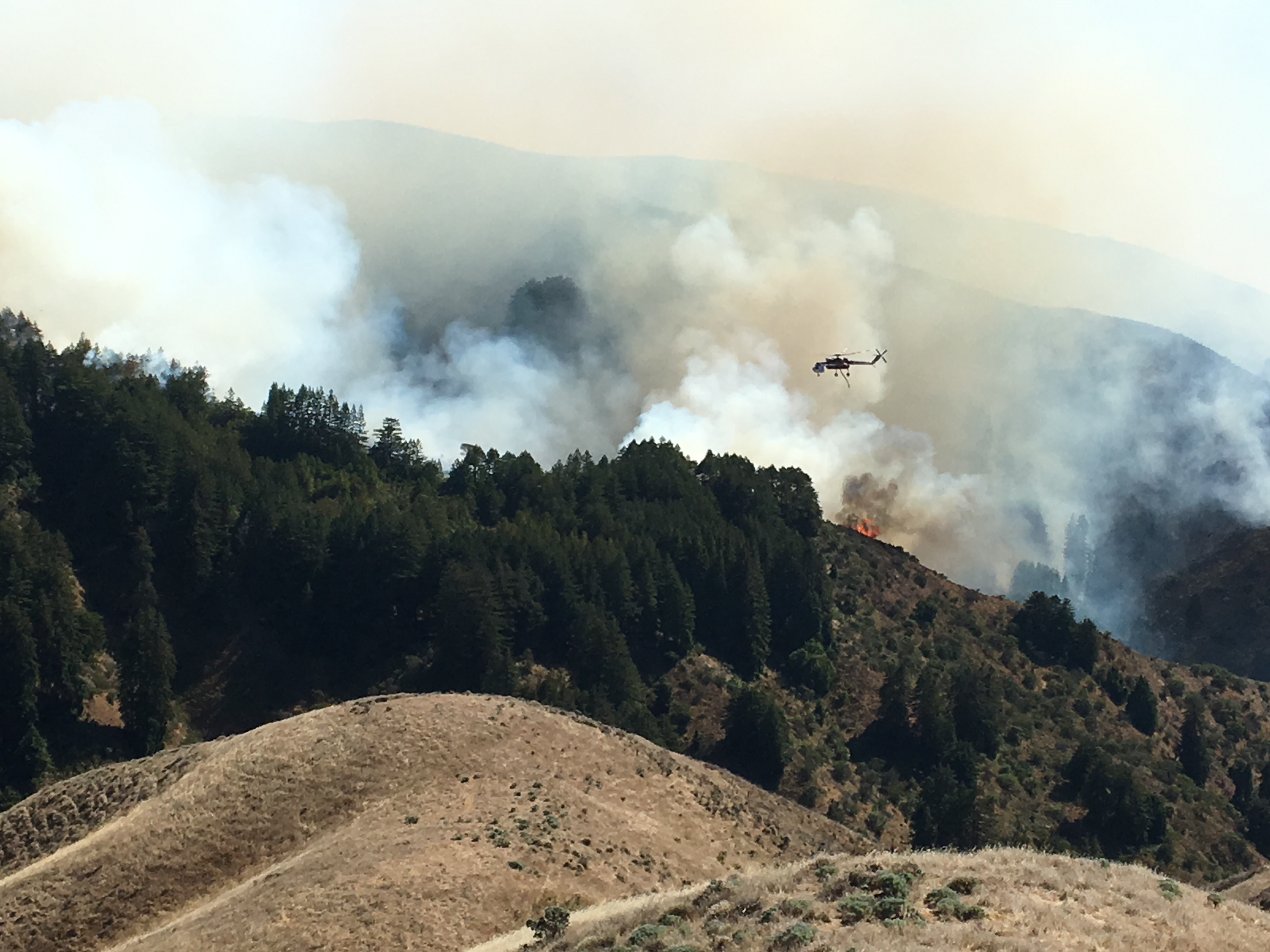 1:10 pm: Helicopter working to slow the fire’s advance toward Mal Paso Creek.
