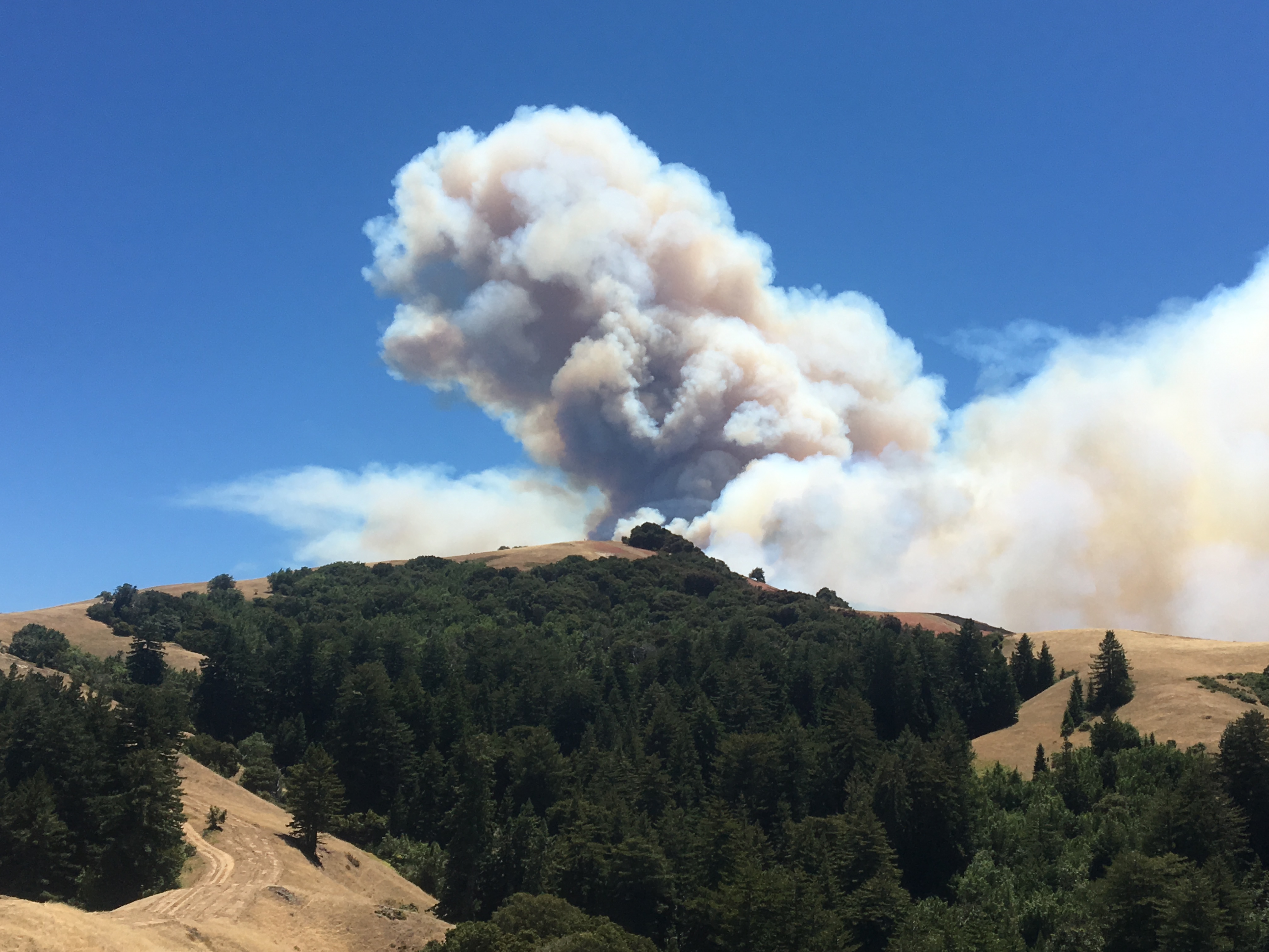 As a result, heavily populated Palo Colorado Canyon and surrounding neighborhoods, including Long Ridge and Green Ridge are now being evacuated. Structure protection groups are responding to the scene, in case the fire does make it into inhabited zones.