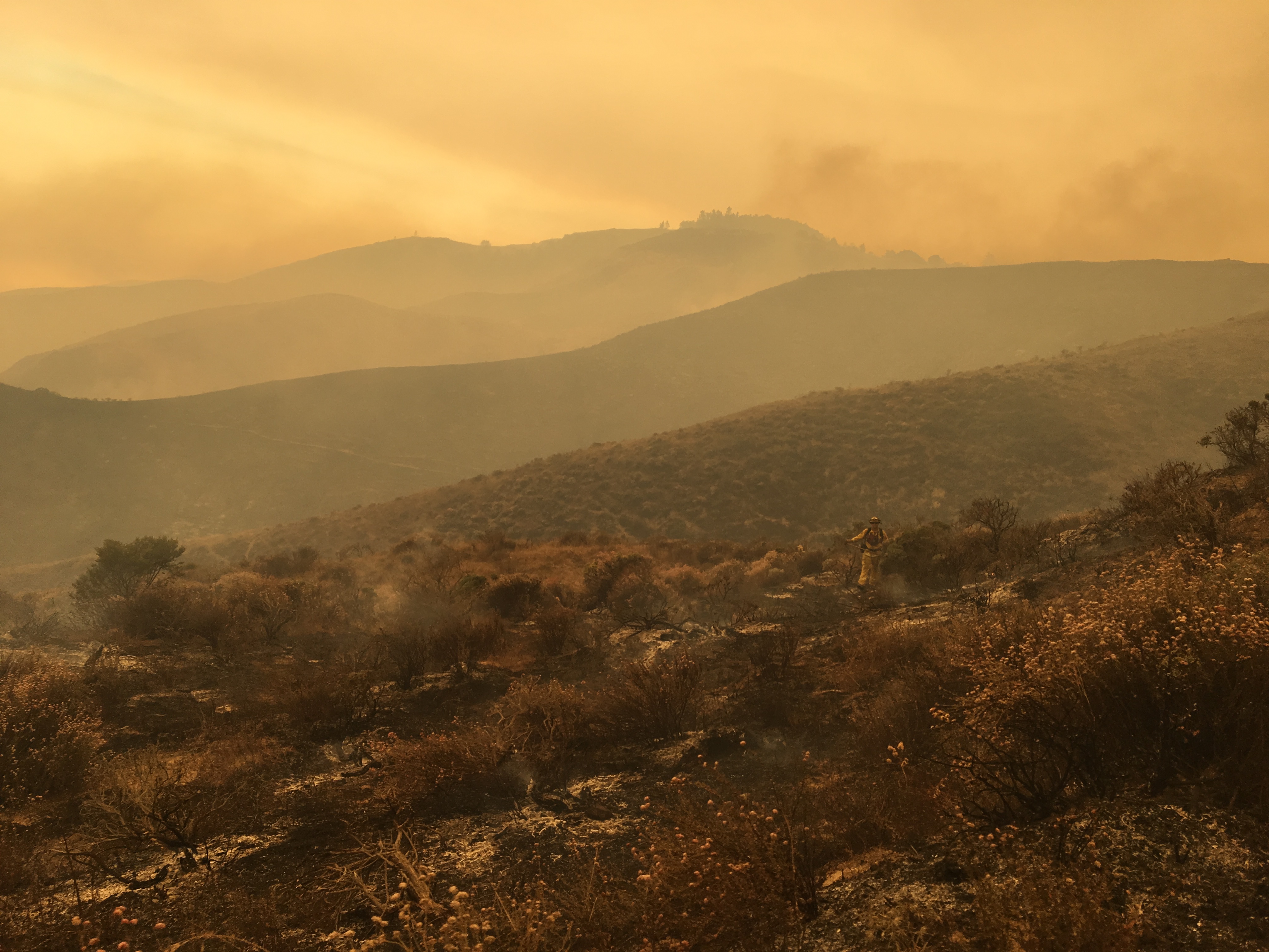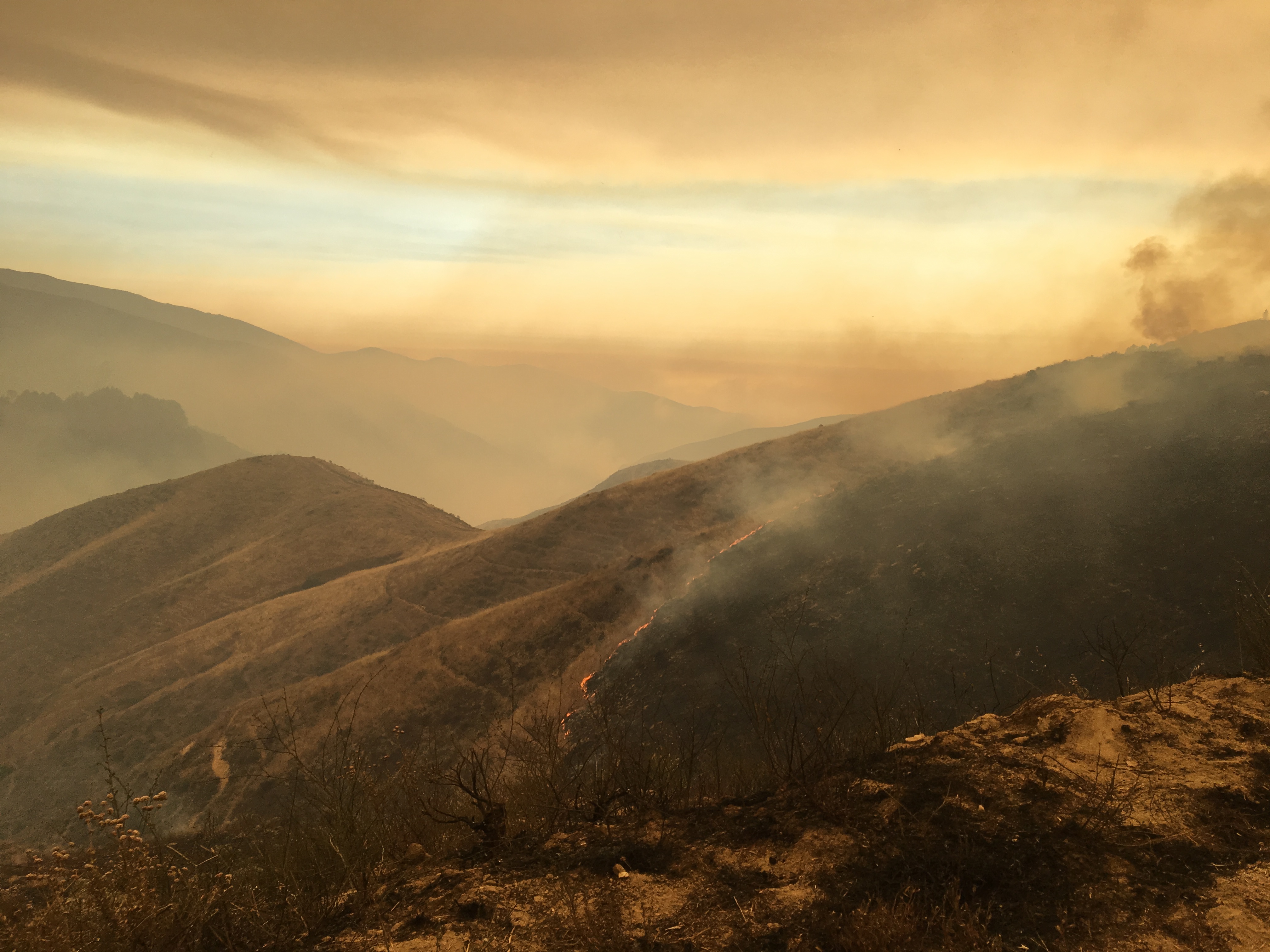 Another view of the country the fire is currently burning through; this time looking south. Pico Blanco in the background.
