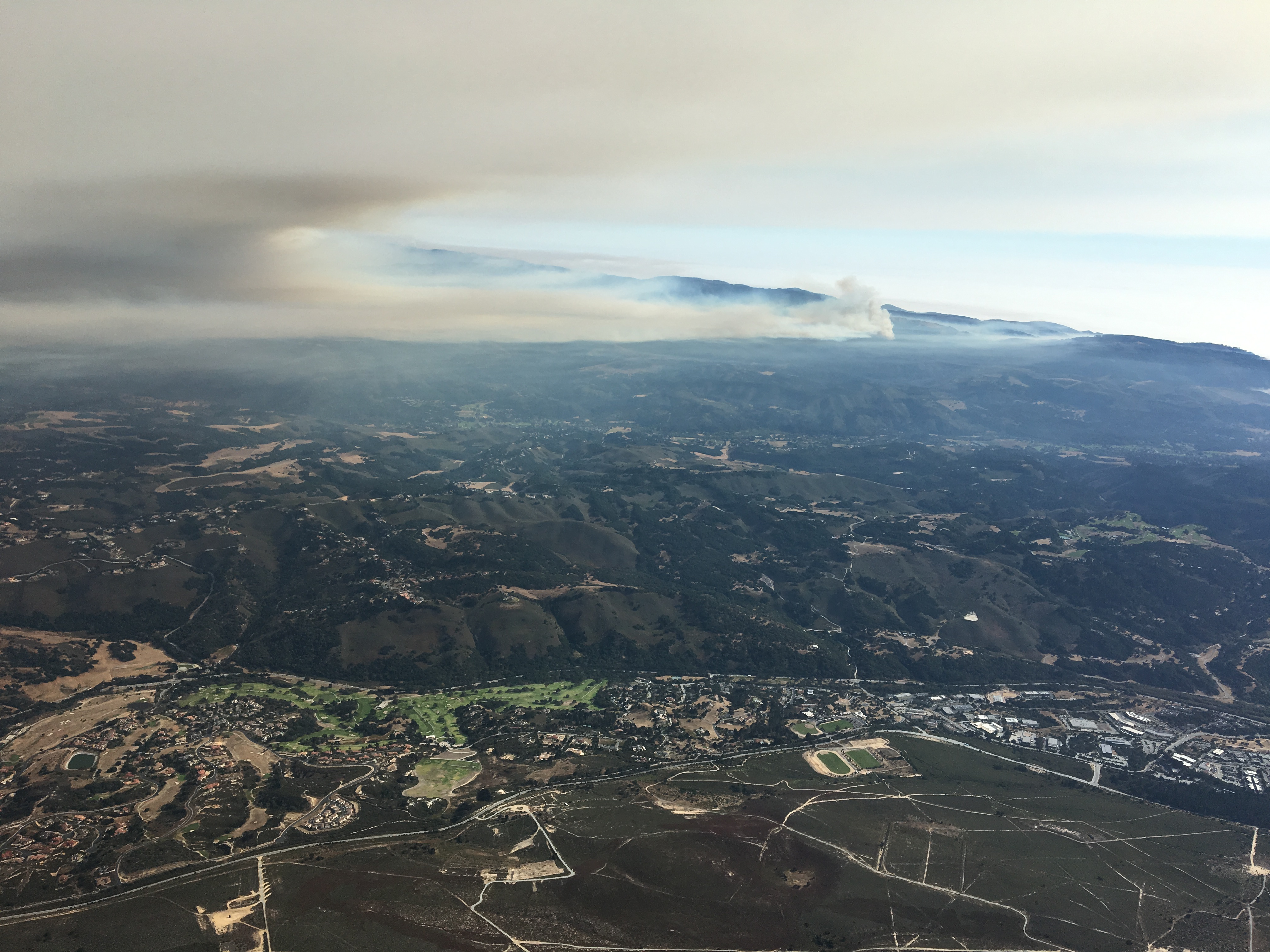 That’s actually a pretty big fire burning near the Mitteldorf Preserve. But it’s dwarfed by the massive smoke cloud rising from the fire near Pat Spring. Viewed from above Ft. Ord.