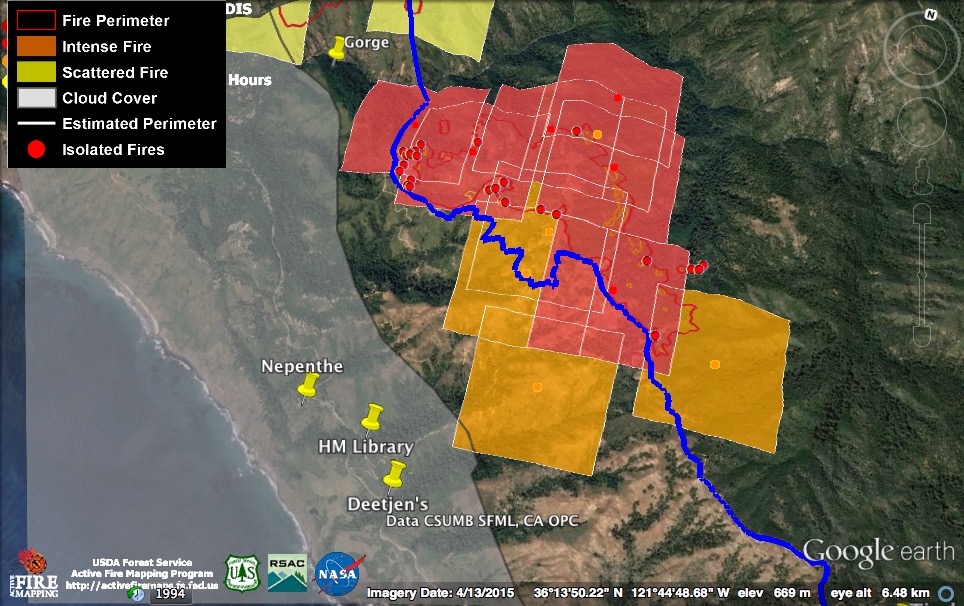 Keith….thanks for the visuals and detailed text. As a Big Sur ex-pat, currently living in N Texas, but with my heart and soul still alive in Big Sur, I am watching with great interest and concern, and availing myself of all resources to track this beast. Thanks for keeping me informed. Appreciate it.