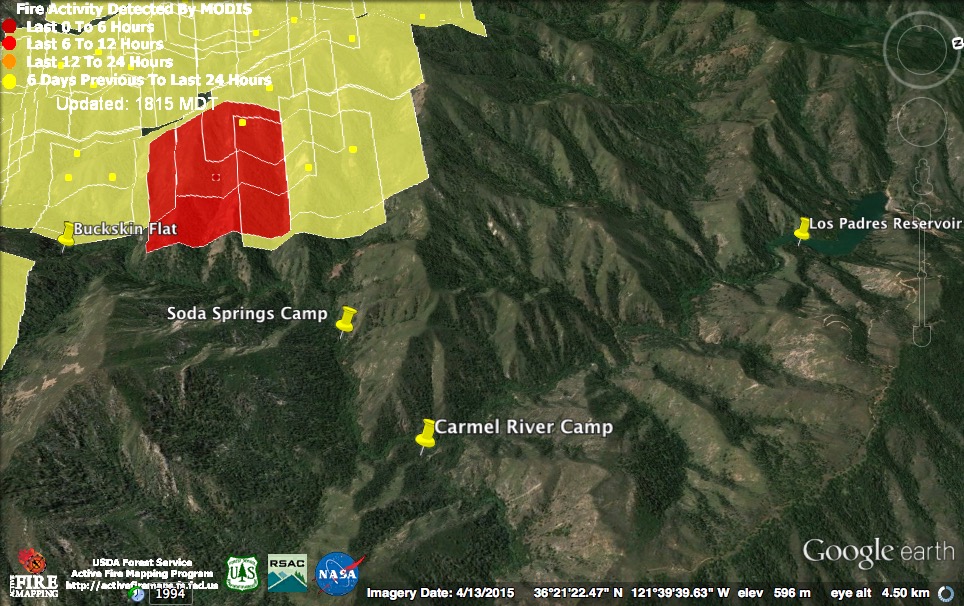 The heat detection furthest to the north was on the slopes of Elephant Mountain, above the Carmel River between Buckskin Flat and Soda Springs.