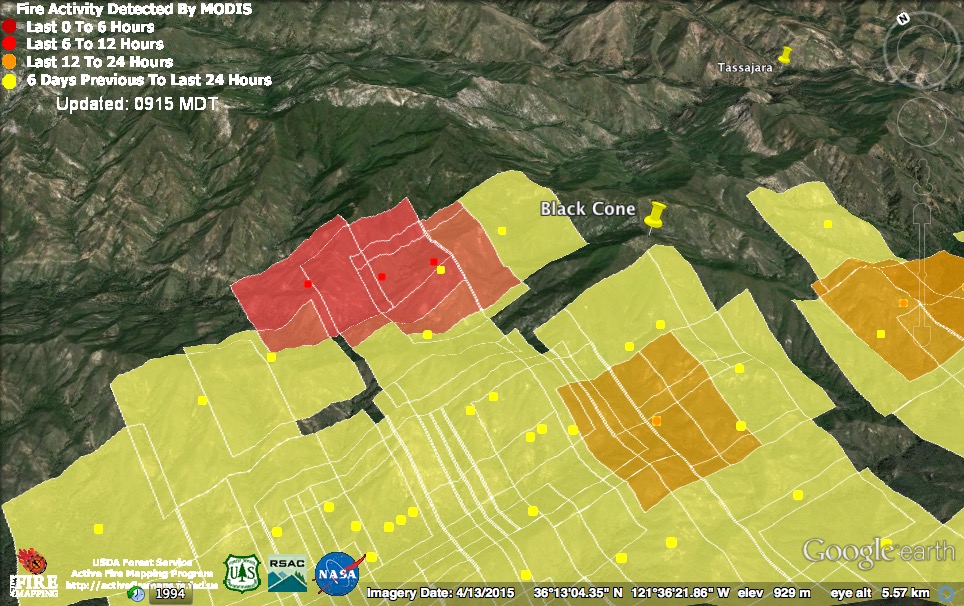 These heat detections were acquired around noon and 2:00 pm today. No heat was found near the western line, on the Coast Ridge, at that time.