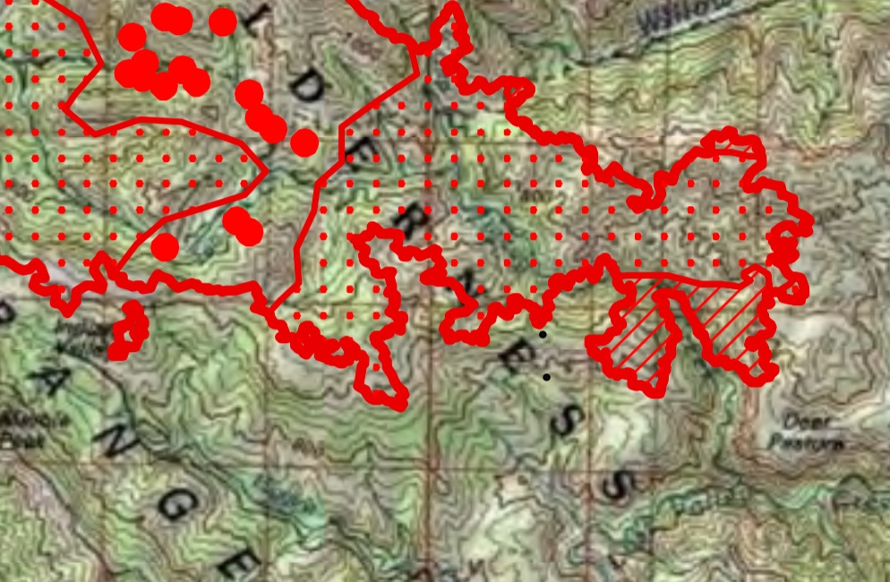 Meanwhile, at the head of the fire, the infrared scan found very active fire working down both sides of Zig Zag Creek toward Lost Valley Creek, and a smaller active fire zone working north toward Willow Creek.