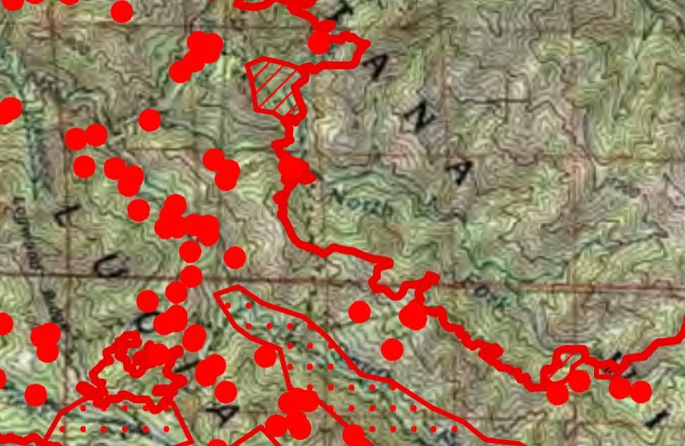 Important caveats: Please note that the squares on the heat detection maps represent the expected margin of error, not the size of the area burned. In other words, the detection could have come from anywhere within the square. Also be aware that false detections do sometimes occur. An outlying or “over the line” heat detection is not, by itself, a confirmation that there is fire in the area indicated. In addition, the satellites do not detect heat everywhere that fire exists. Creeping, backing or smoldering fire is often not detected. Finally, the detections are only snapshots of moments in time. Flare ups that occur before or after a satellite pass may be entirely missed.