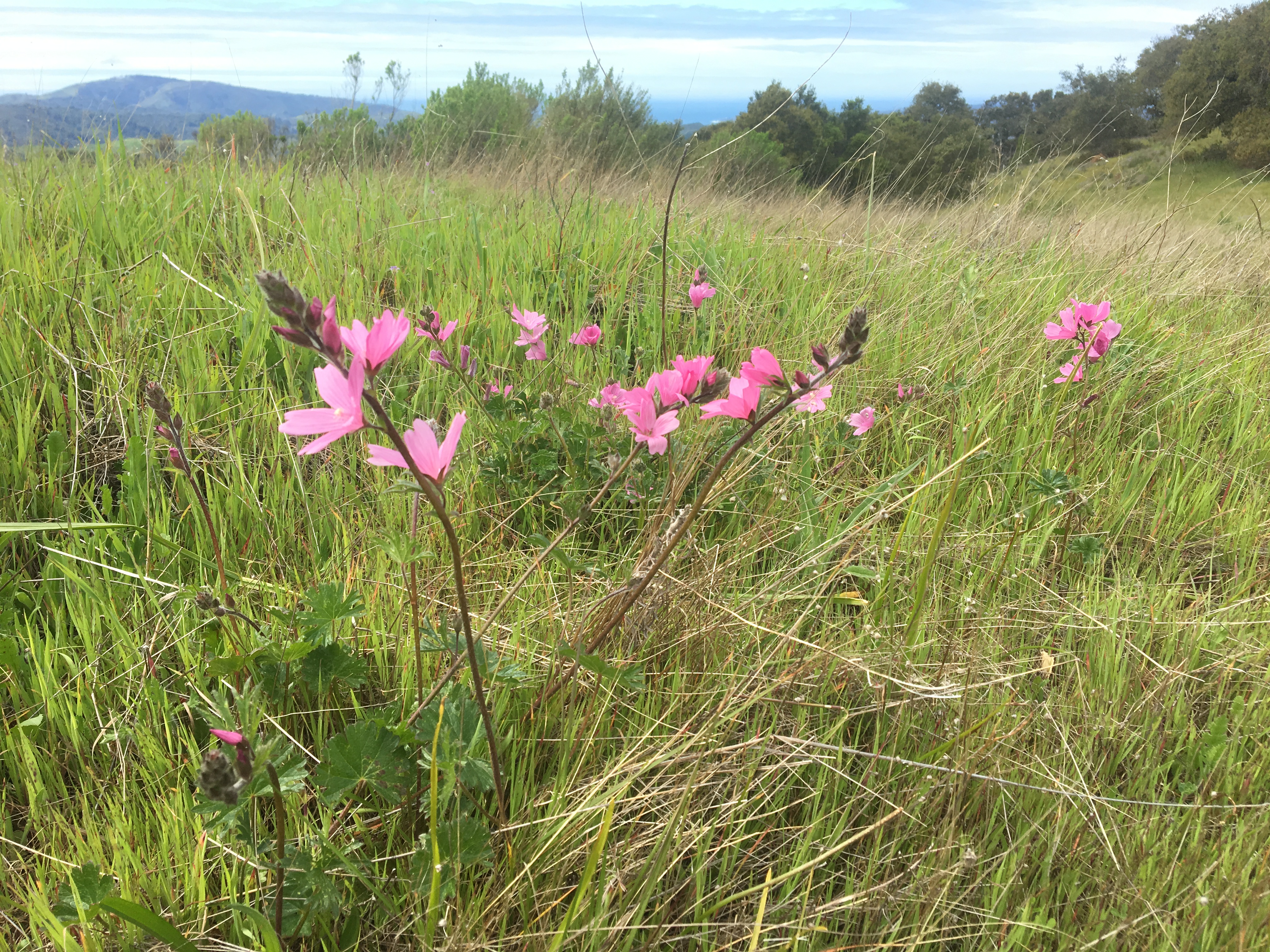 Dwarf Checkerbloom (Sidelcea malviflora) is currently brightening fields throughout the Central Coast region.
