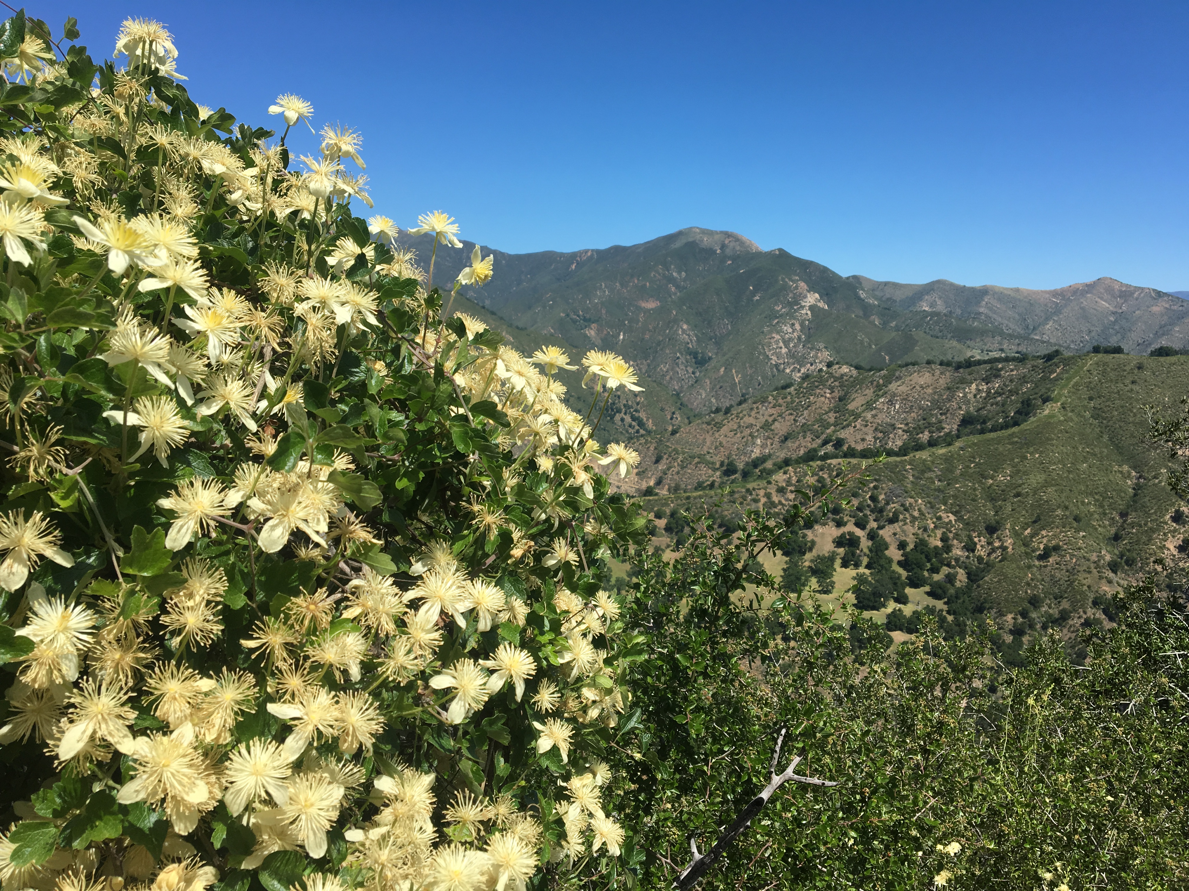 There are stretches of the road where vigorously blooming pipestem clematis (Clematis lasiantha) seems to be draped over everything.